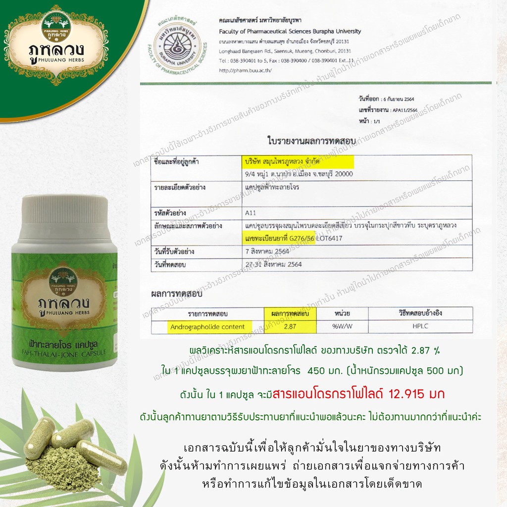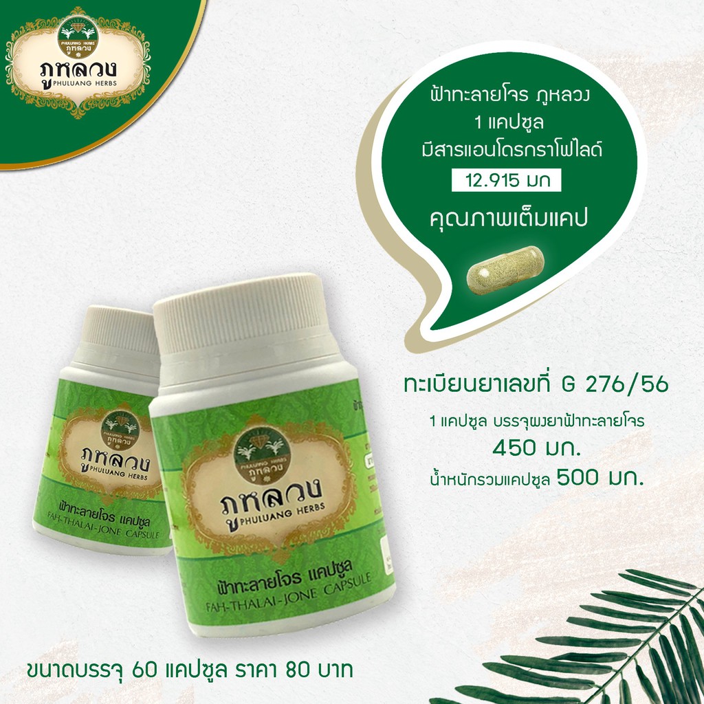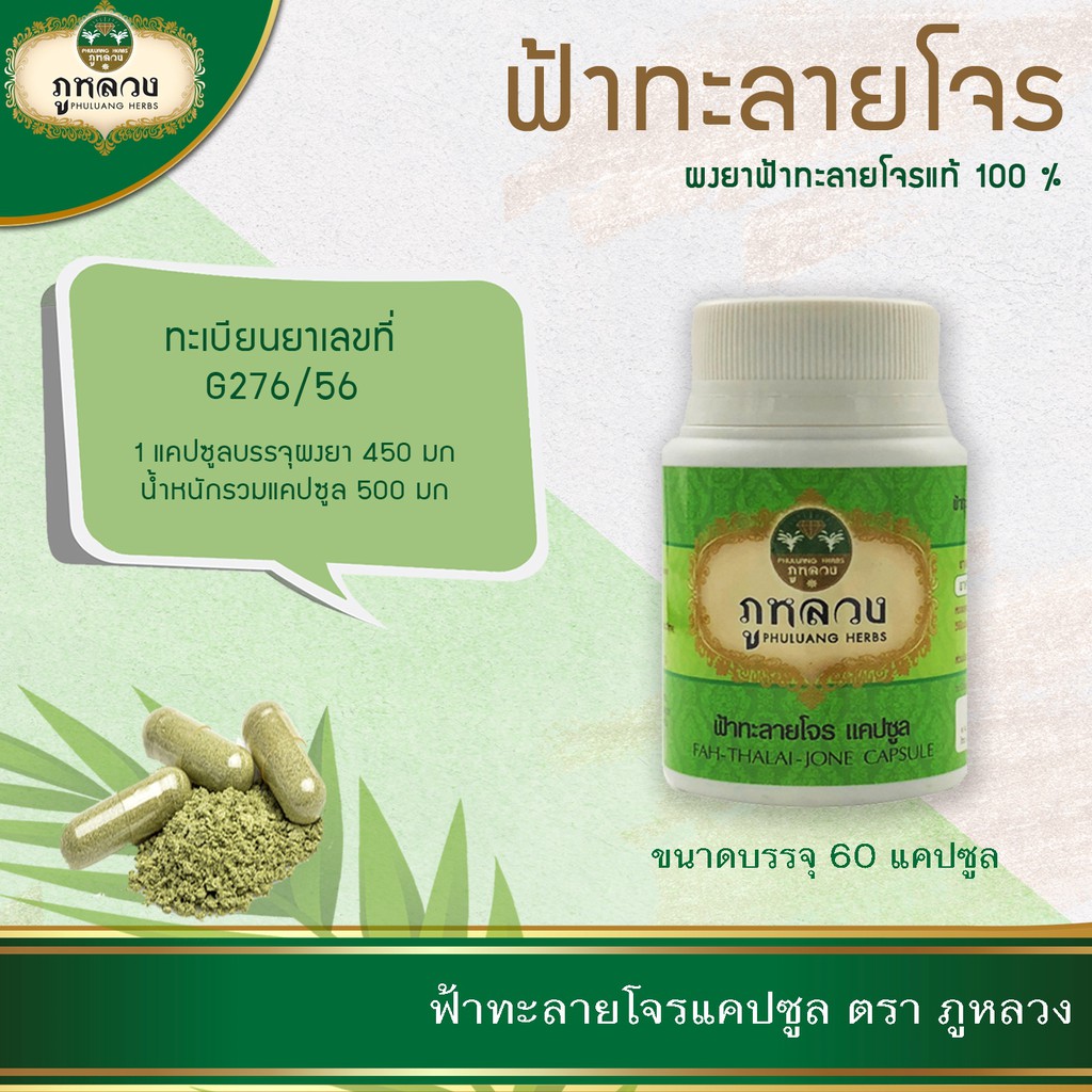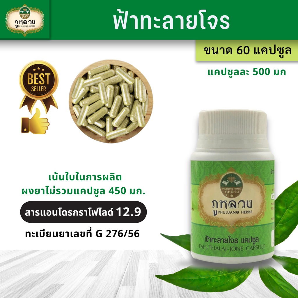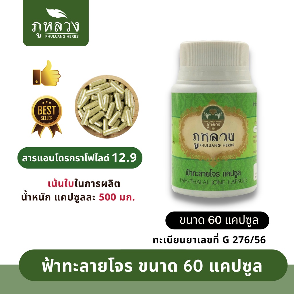 ฟ้าทะลายโจร ตรา ภูหลวง (น้ำหนัก 500 mg) 📣 โค้ดส่วนลด🔖 ถ้ามีจะโพสที่หน้าร้าน 😍 ฟ้าทะลายโจรแคปซูล ขวดละ 60 แคปซูล