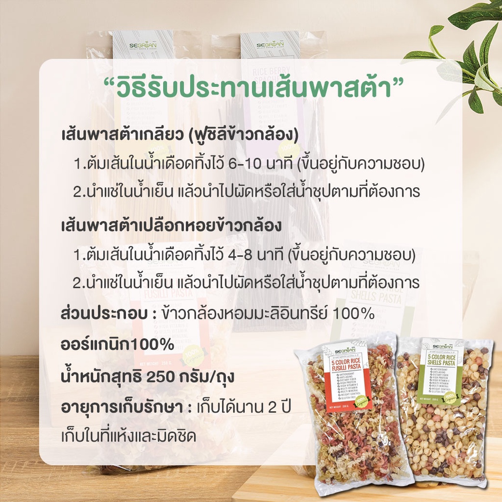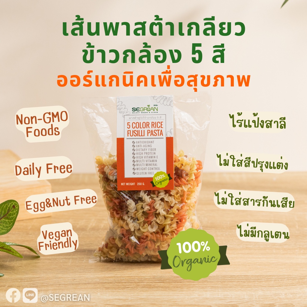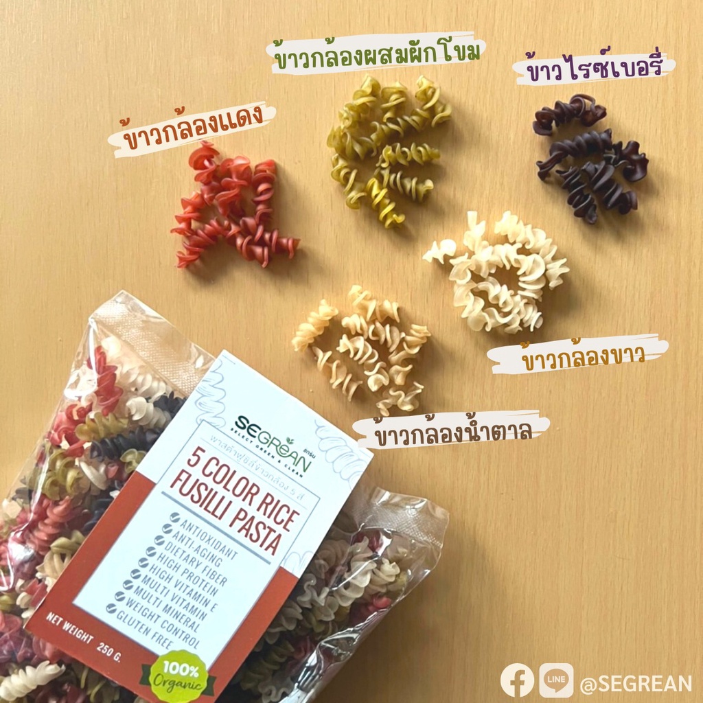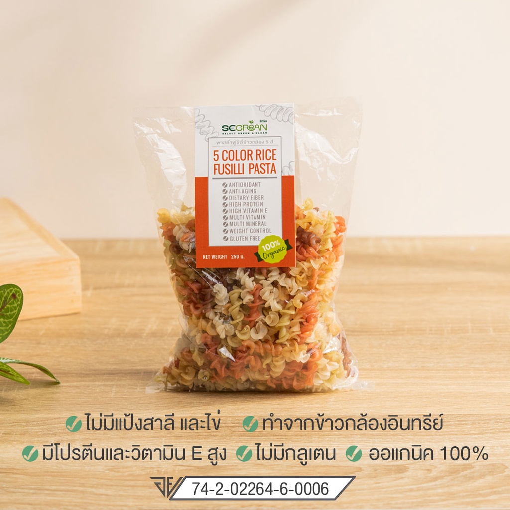 [เจ] เส้นพาสต้าเกลียว 5 สี ทำจากข้าวกล้องออร์แกนิค 250 กรัม (พาสต้าฟูซิลี่) Gluten Free Organic100% วีแกนทาน