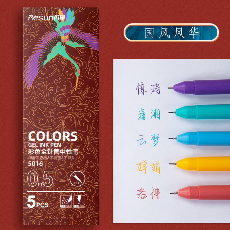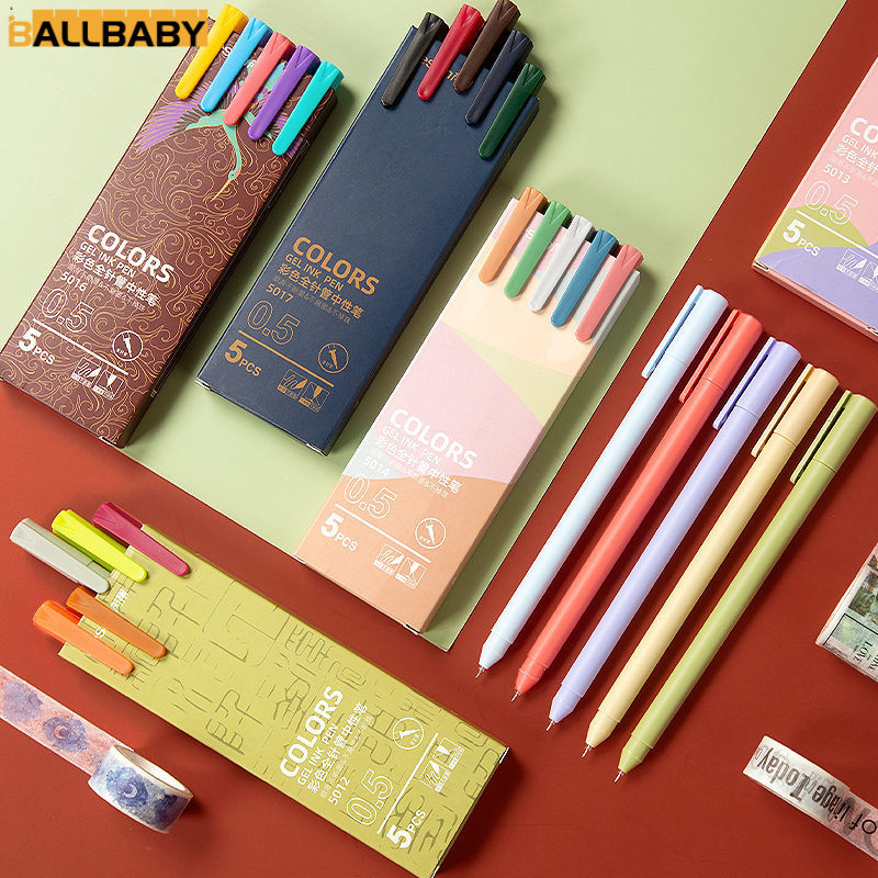 *พร้อมส่ง* ปากกาเจล สไตล์โมรันดี คละสี อุปกรณ์เครื่องเขียนสำหรับนักเรียน 5 ชิ้น/กล่อง