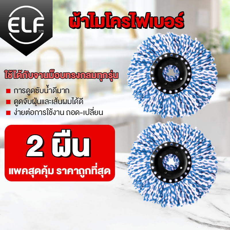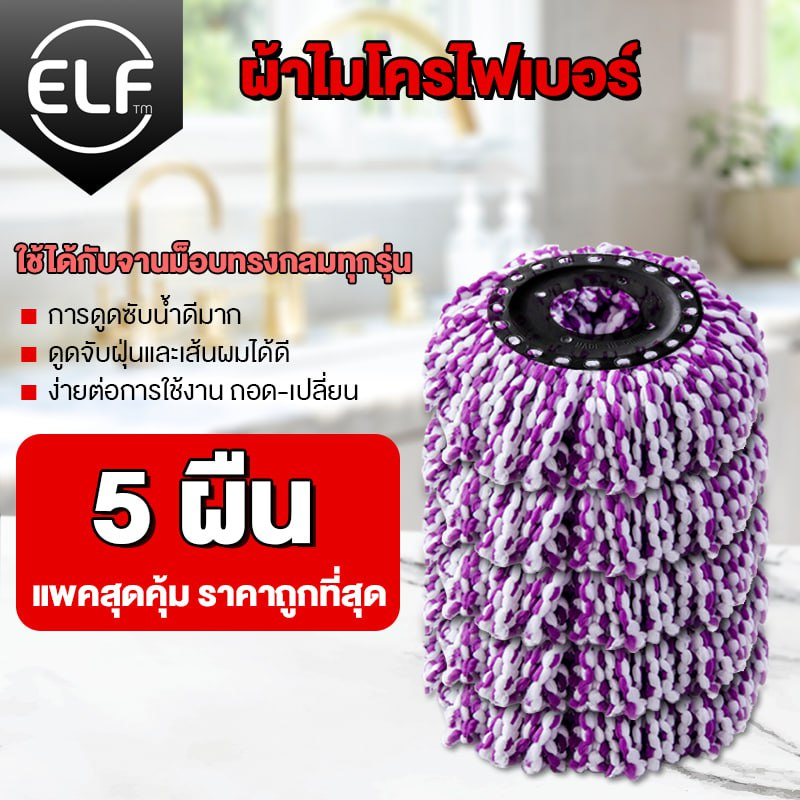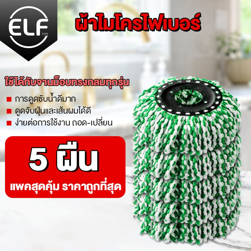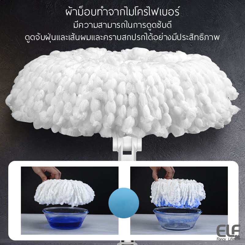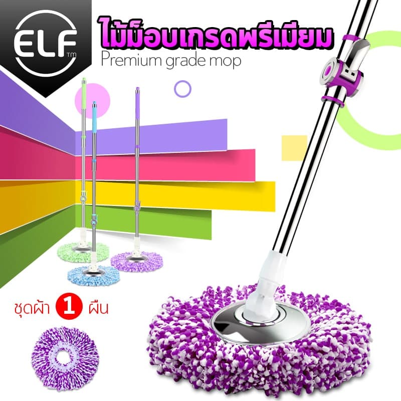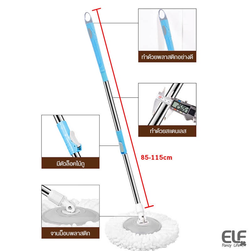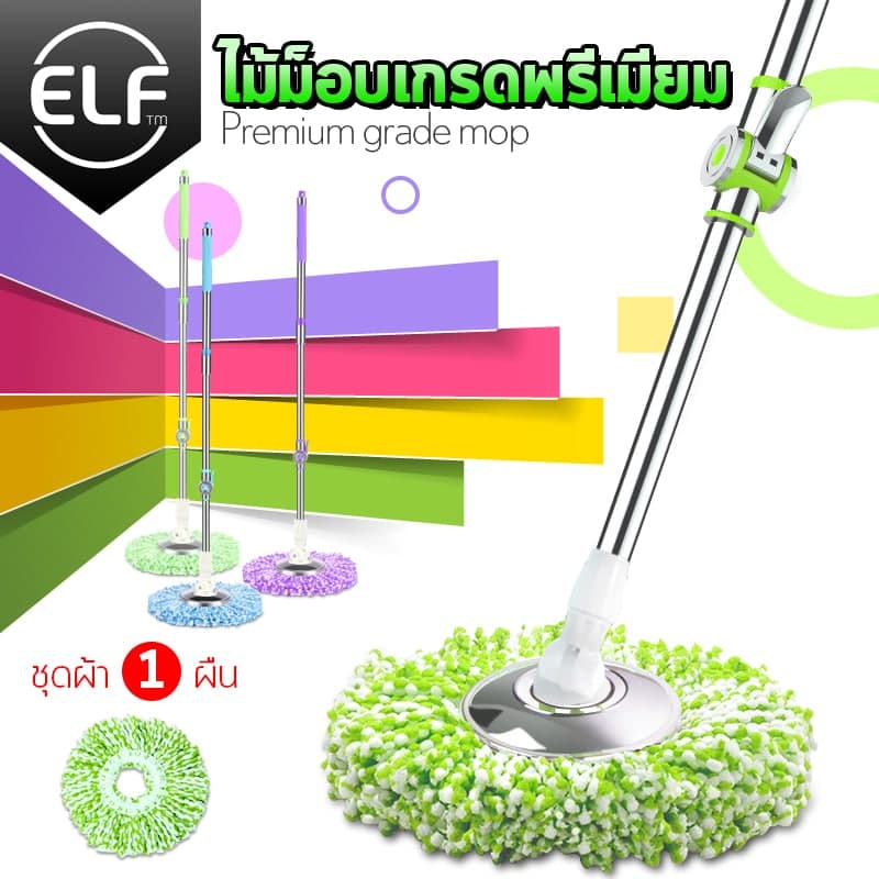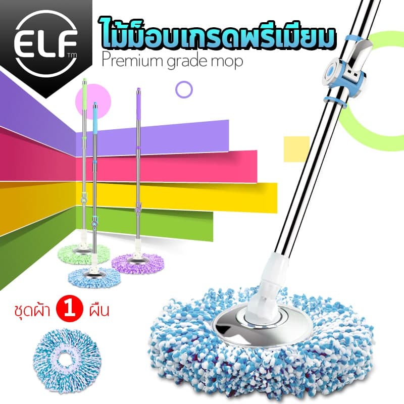 ELF ไม้ถูพื้น พร้อมผ้า 1 หรือ 2 ผืน ไม้ถูพื้นด้ามสแตนเลส รุ่น Spin Mop 4998