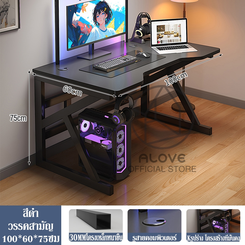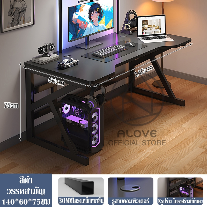 ALOVE โต๊ะคอม โต๊ะทำงาน 100/120/140/160CMขาโลหะแข็งแกร่งรุ่นพิเศษ ใช้ได้ทั้งในห้องนอนและสถานที่ทำงาน GamingTable