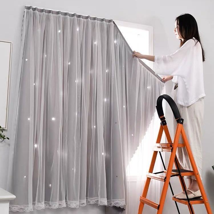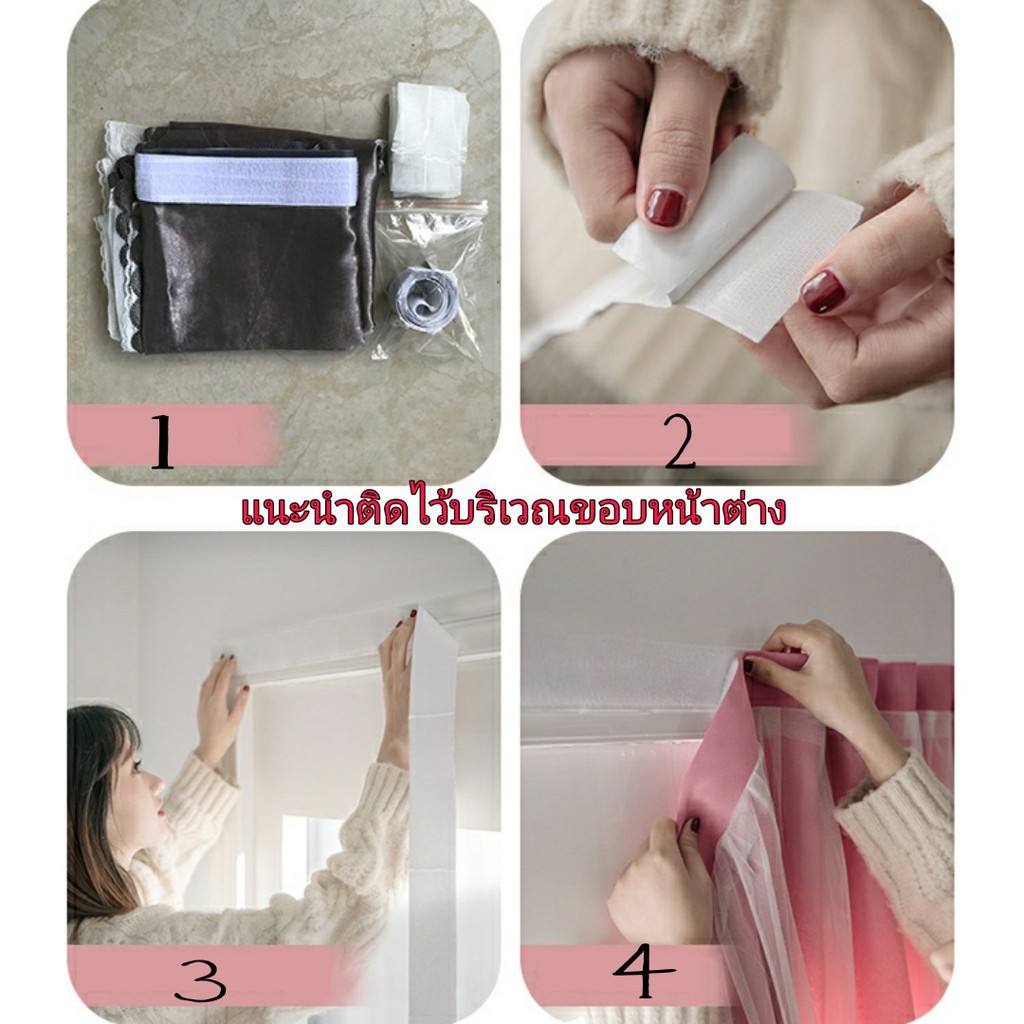 ผ้าม่าน2ชั้น🌟ทึบกันแสงUV แถมอุปกรณ์ติดตั้ง+สายรัด 🌟ไม่เจาะผนัง ไม่ต้อใช้ราว ติดเองง่าย ถอดซักได้ด้วย พร้อมส่งทันทีจากไทย