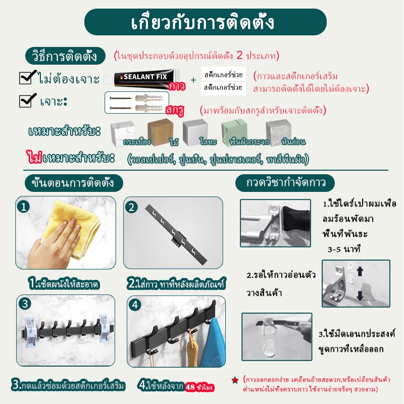 MEIDOO ตะขอโลหะ ไม้แขวนเสื้อ ตะขอแขวนในห้องน้ำ ฟรี ตะขอเจาะผนัง กันน้ำและกันสนิม
