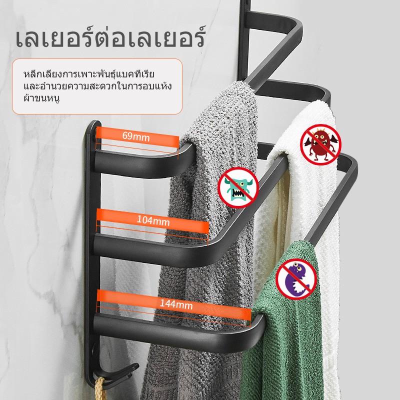 MEIDOO อลูมิเนียม ราวแขวนผ้าเช็ดตัว หลายชั้น ชั้นวางของในห้องน้ำ อุปกรณ์ในห้องน้ำ กันน้ำและกันสนิม