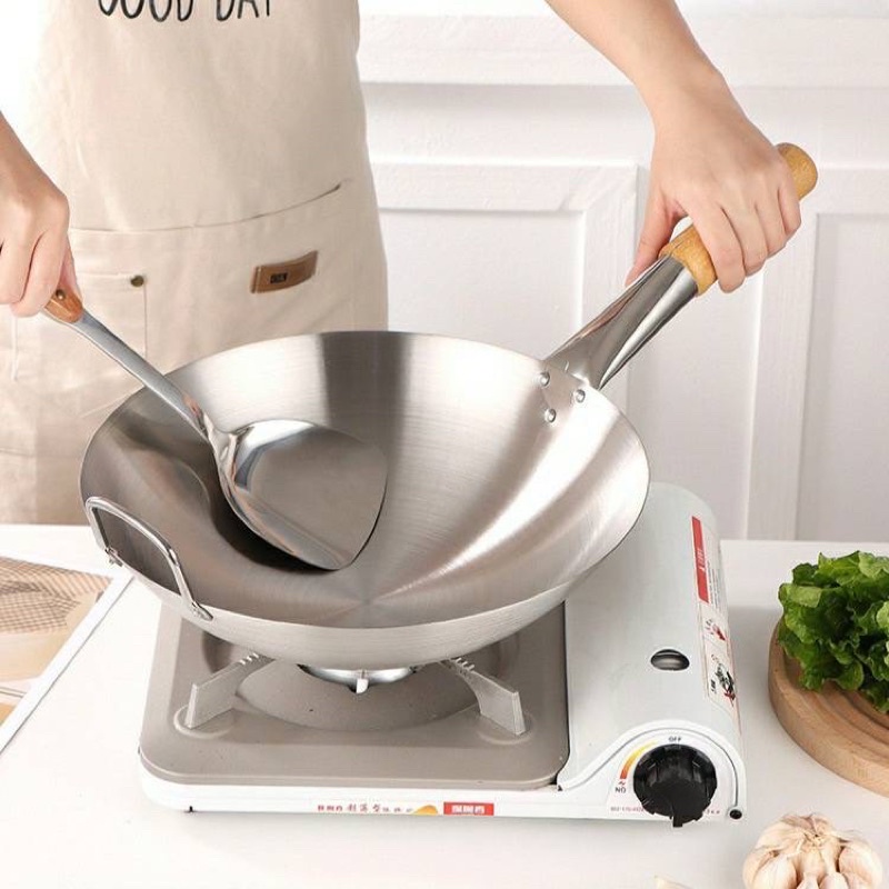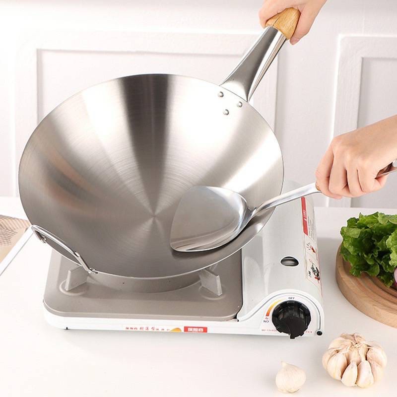 กระทะสแตนเลส ก้นลึก ผิวลื่นไม่ติด ไม่ขึ้นสนิม ไม่เคลือบสาร กระทะก้นลึก (ไม่มีตะหลิวแถม)