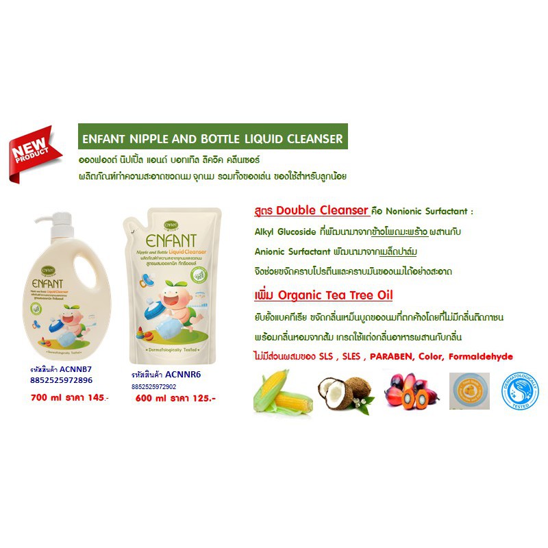 Enfant (อองฟองต์) ผลิตภัณฑ์ทำความสะอาดจุกนมและขวดนม สูตร Double Cleanser ขวดปั้ม และแบบถุงเติม