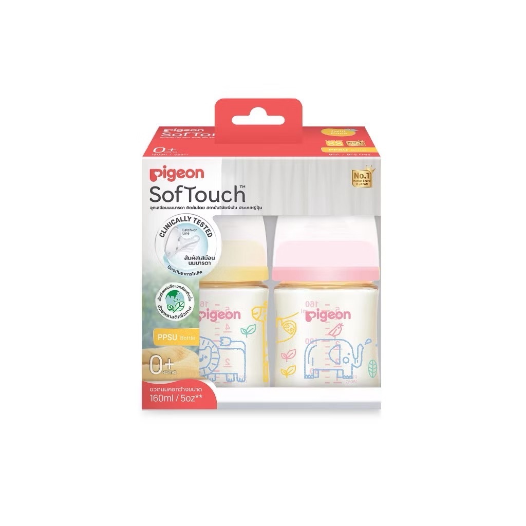 📌ของแท้ งานไทย🇹🇭 ขวดนม Pigeon พีเจ้น คอกว้างสีชาและขาวขุ่น 5oz.พร้อมจุก SS/8oz.พร้อมจุก M
