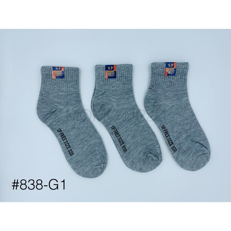 ถุงเท้าข้อกลางสีพื้น 838 •แพ็ค 12 คู่ 1 สี #FREESIZE