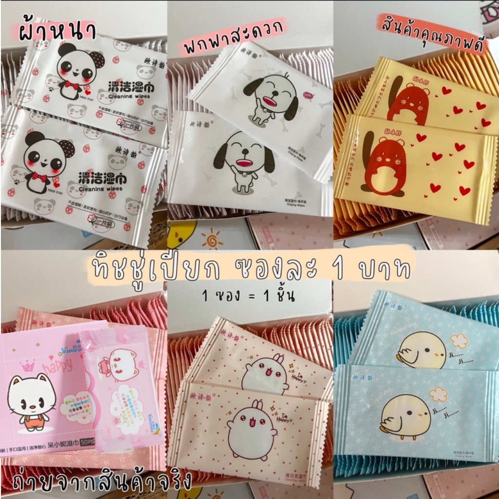 ทิชชู่เปียกแบบพกพา ทิชชู่เปียกพกพา *สั่งซื้อขั้นต่ำ 5 ชิ้น* ทิชชู่เปียกลายน่ารัก ของแถมจีบลูกค้า ทิชชู่เปียกลายคิดตี