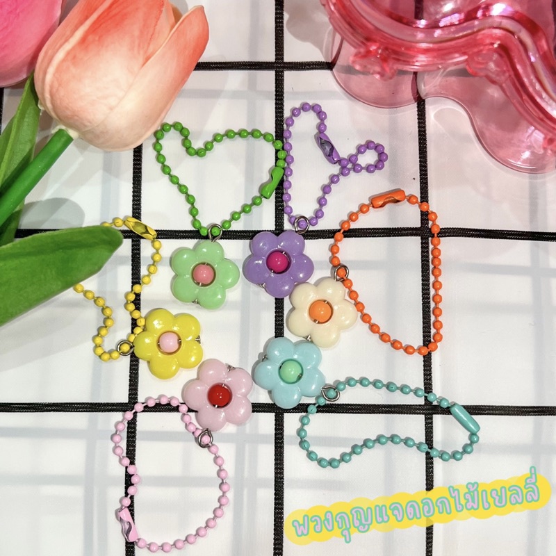 🌸พวงกุญแจดอกไม้เยลลี่ 🚚พร้อมส่งพวงกุญแจโซ่ไข่ปลา พวงกุญแจเกาหลี