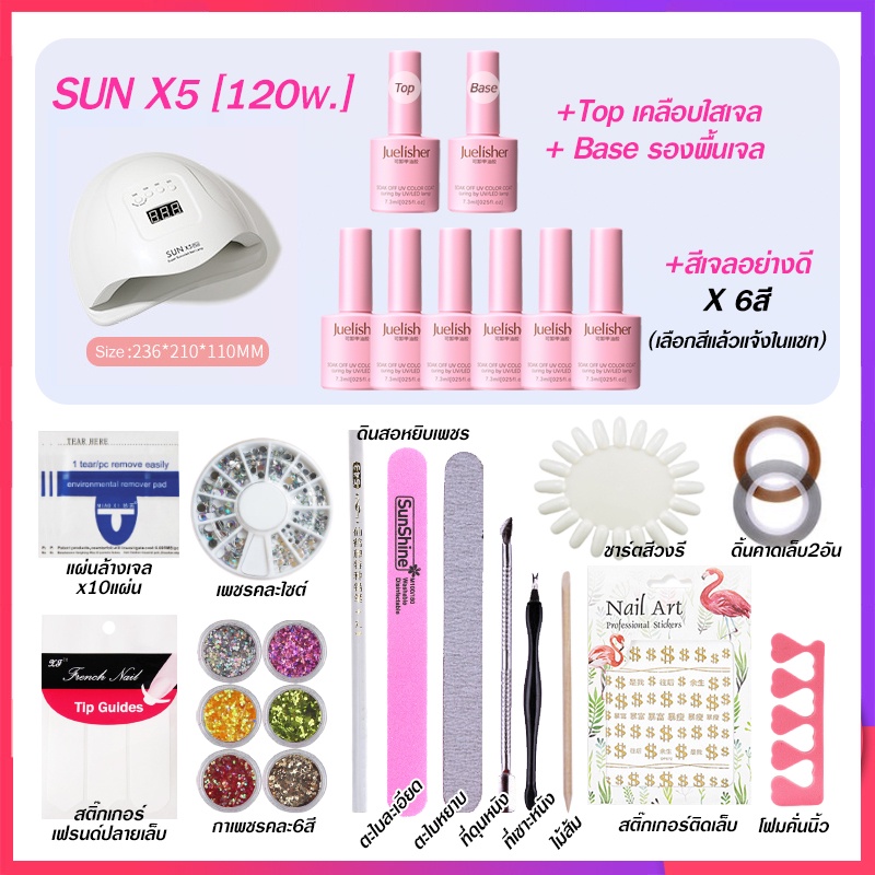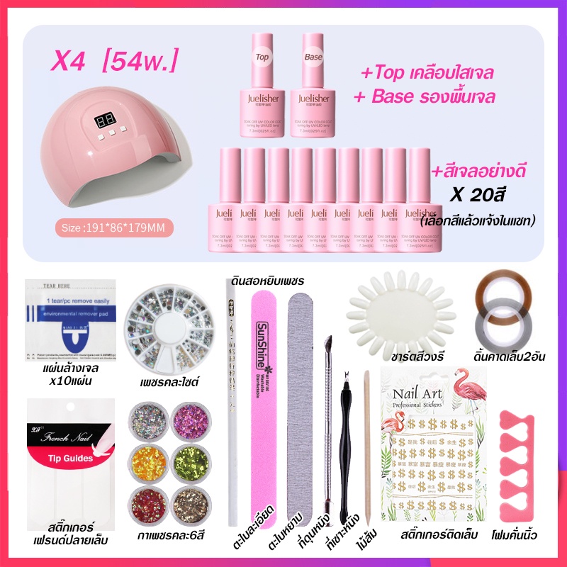 พร้อมส่ง⚡ชุดทําเล็บเจล เครื่องอบ SUN LED 48w. 110w. สีเจล20สี ตะไบเล็บ น้ำยาล้างเล็บ เซ็ททำเล็บ