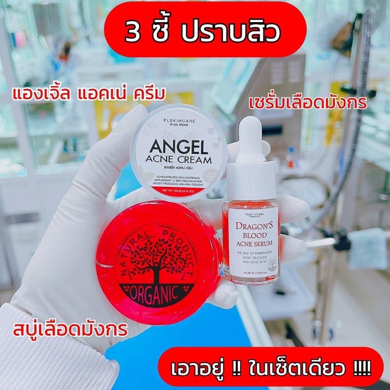 💢สั่งเซตถูกกว่า เซตลดสิว3ชิ้น เซรั่มเลือดมังกร+แองเจิ้ลแอคเน่ครีม+สบู่เลือดมังกร สิวหายไวมากLotผลิตล่าสุด