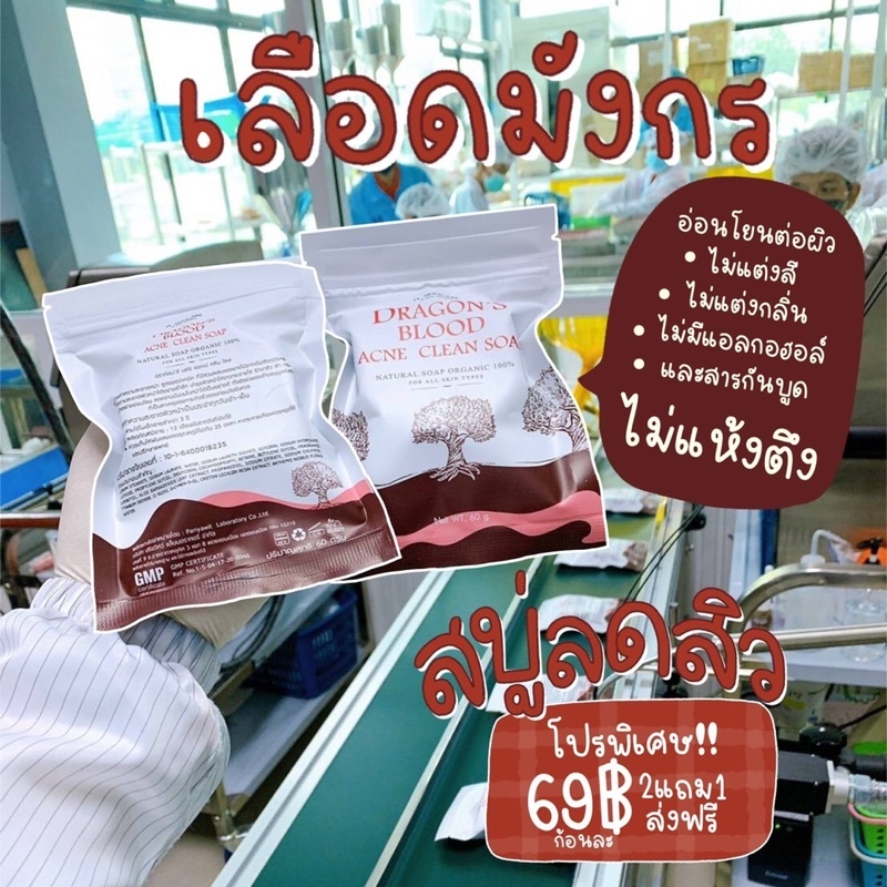 สบู่เลือดมังกร สบู่ลดสิว Dragon's Blood Acne Soap สบู่ล้างหน้า ออร์แกนิค มีส่วนผสมจากต้