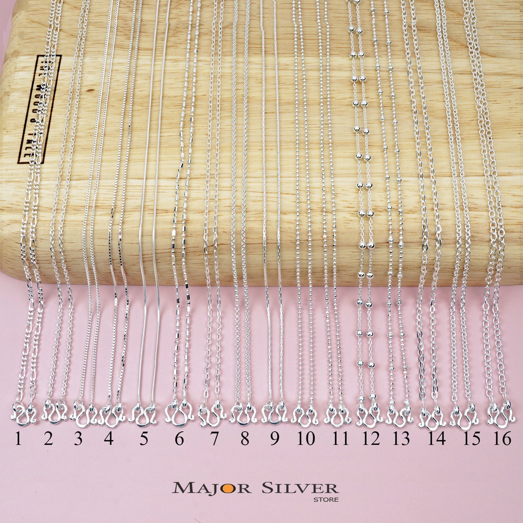 สร้อยคอเงินแท้ 92.5% ชุดจิ๋ว ตะขอตัวเอ็ม ยาว 16, 18, 20 นิ้ว หลายแบบ