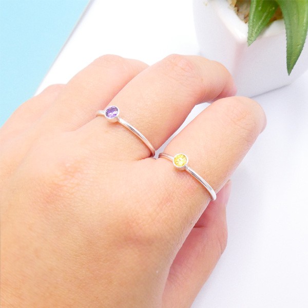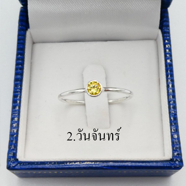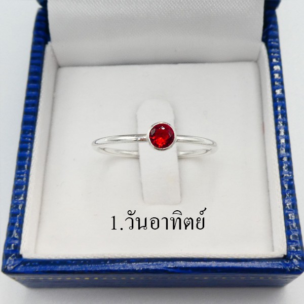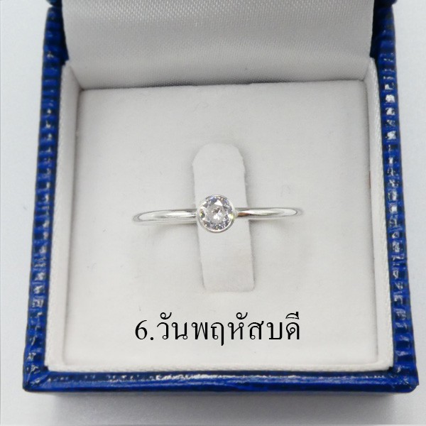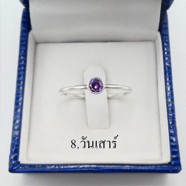 แหวนวันเกิด เงินแแท้92.5% หัวกลม4มิล หุ้มเพชร CZ เกรดพรีเมี่ยม Major Silver : E-V-1.3Pi4