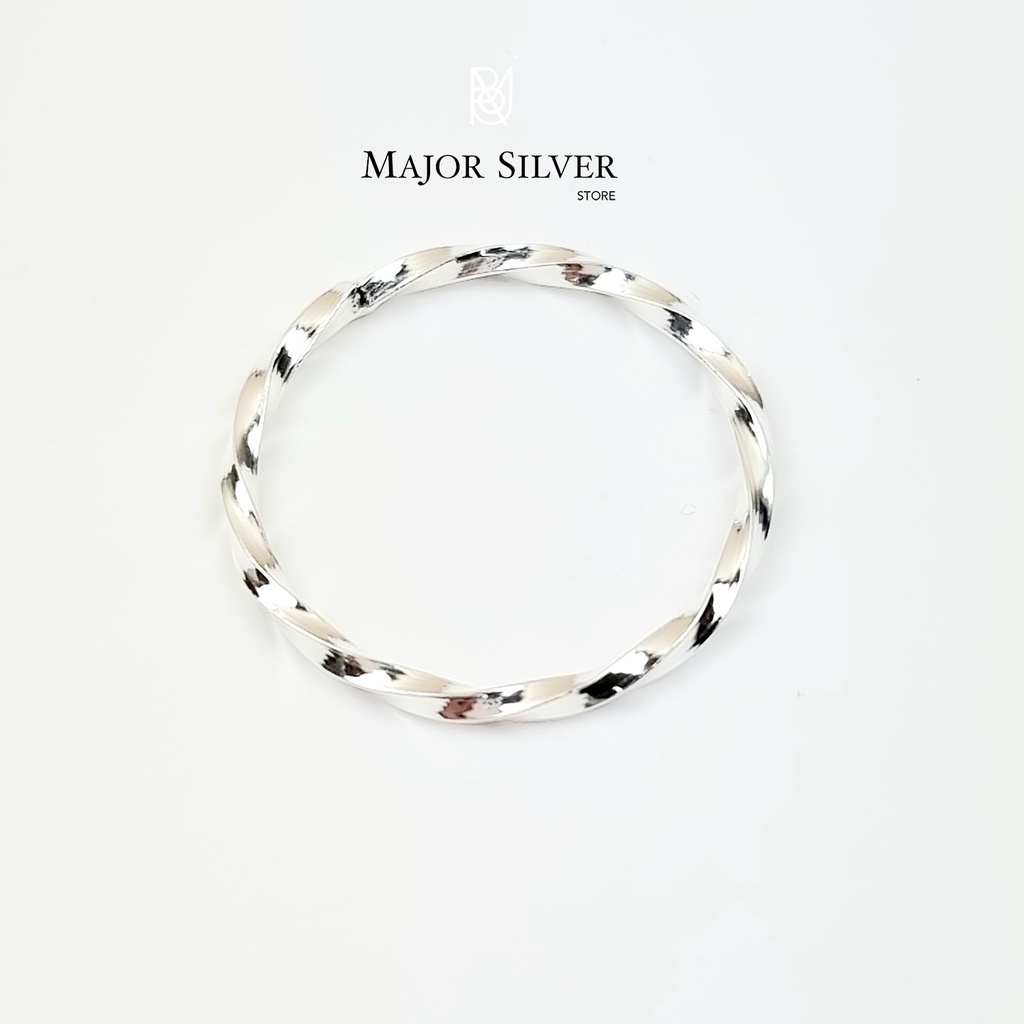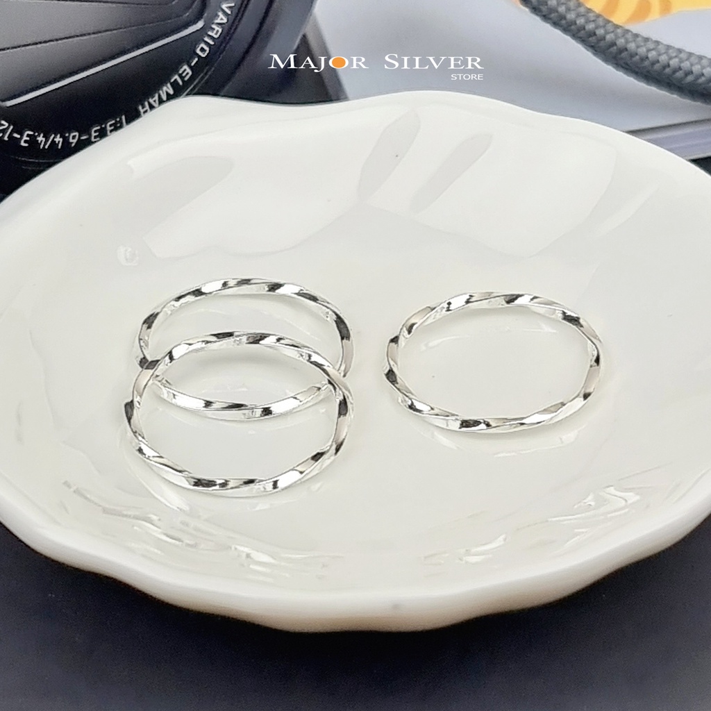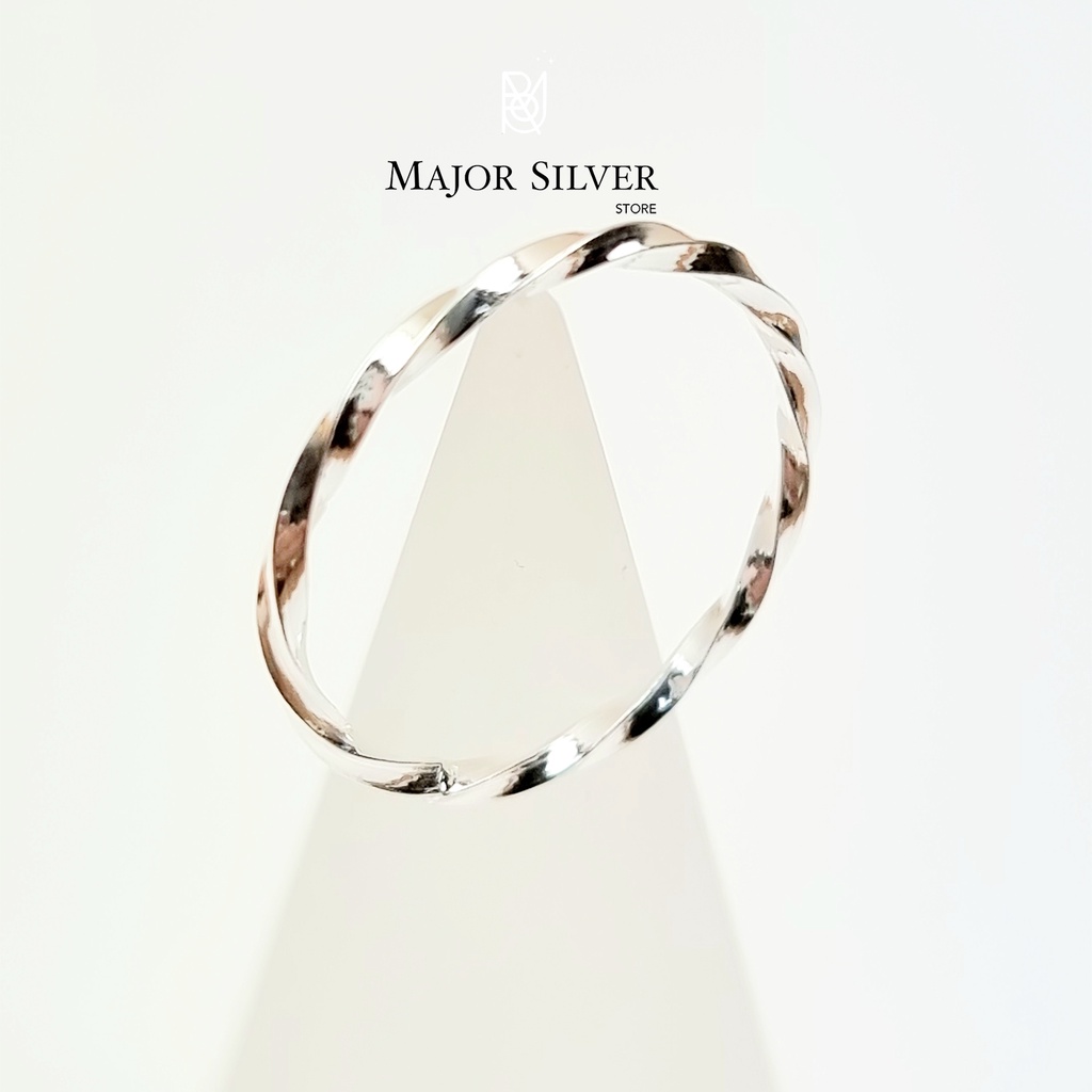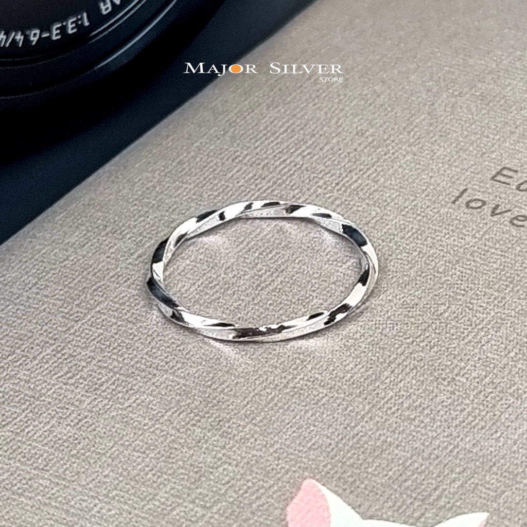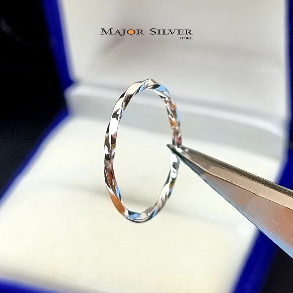 แหวนนิ้วก้อย แหวนลวดสี่เหลี่ยมบิดเกลียว / เงินแท้ 92.5% เรียบๆ สไตล์มินิมอล : E-V-TwSg-1.1