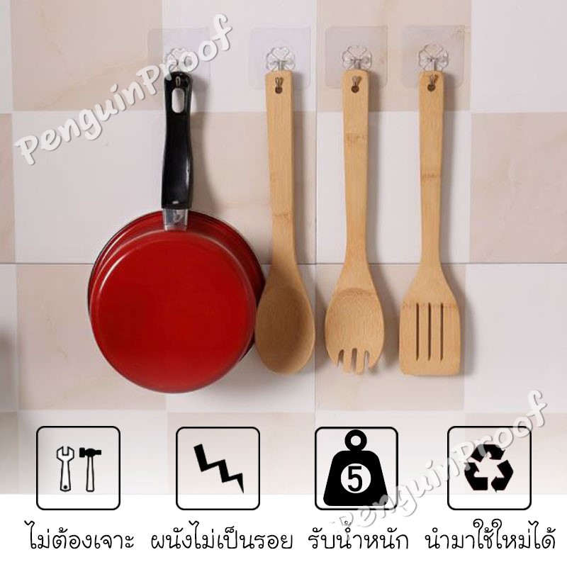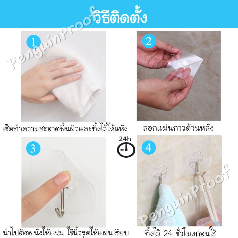 (ติดผนังปูนไม่ได้ อ่านรายละเอียดก่อนซื้อ) Magic Hook ตะขอแขวนติดผนังแบบใส กาวนาโนลอกออกแล้วใช้ใหม่ได้ ผนังไม่เป็นรอย