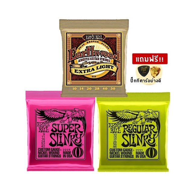Ernie Ball สายกีตาร์ โปร่ง เบอร์ 010 สายกีต้าร์ไฟฟ้า เบอร์ 009 -เบอร์ 010 แถมปิก อย่างดี 1ตัว มูลค่าตัวละ45 บาท