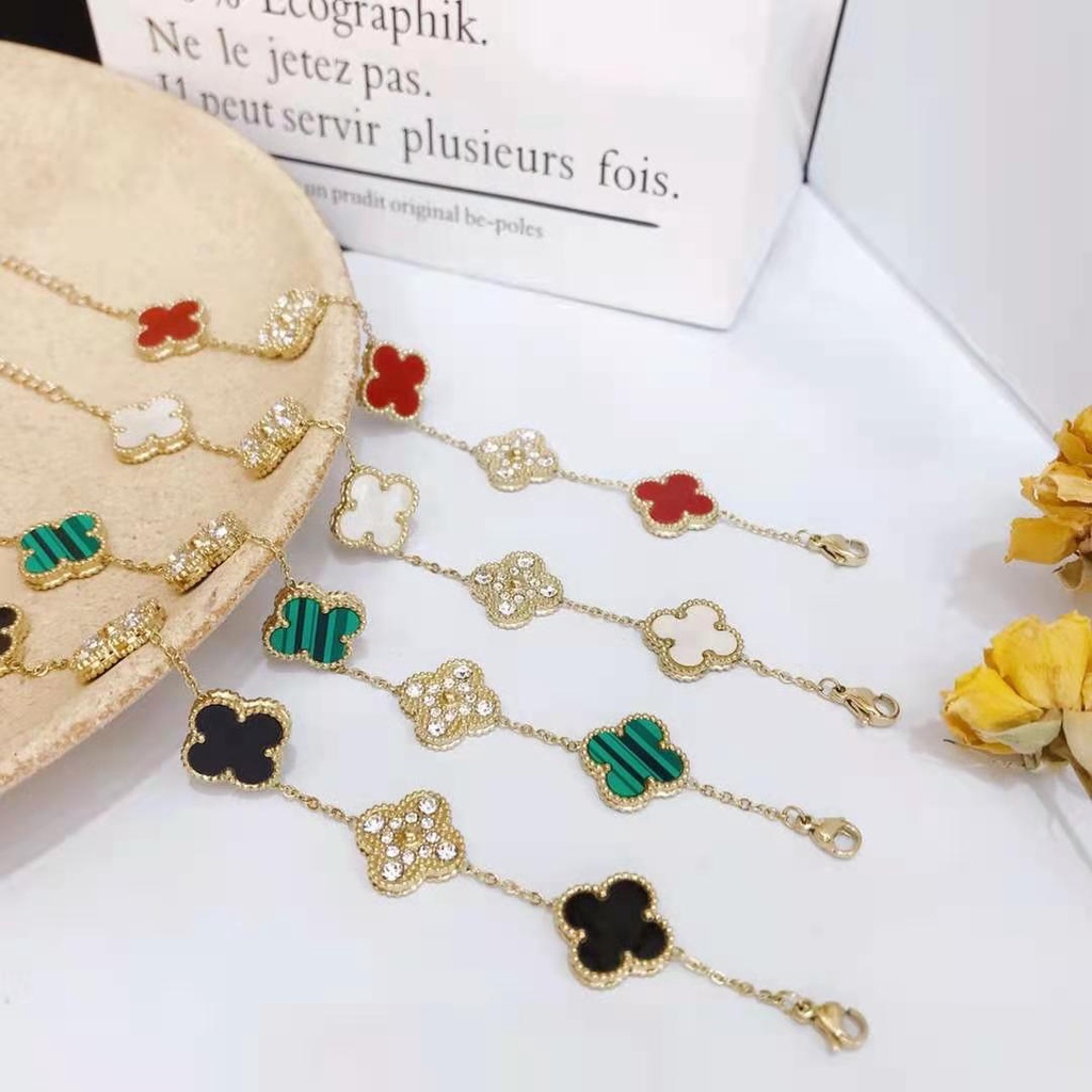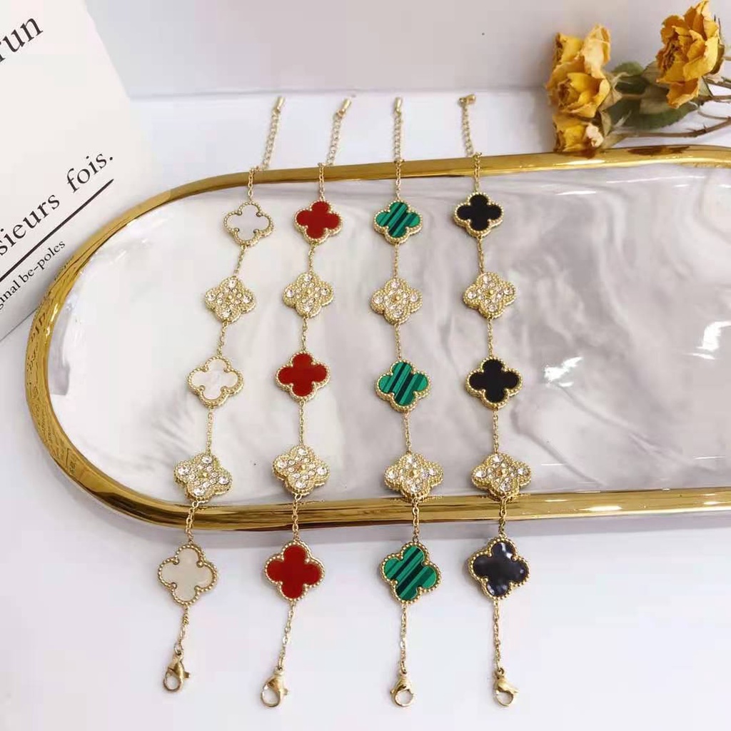 สร้อยข้อมือสเตนเลส รูปใบโคลเวอร์สี่แฉก สำหรับผู้หญิง