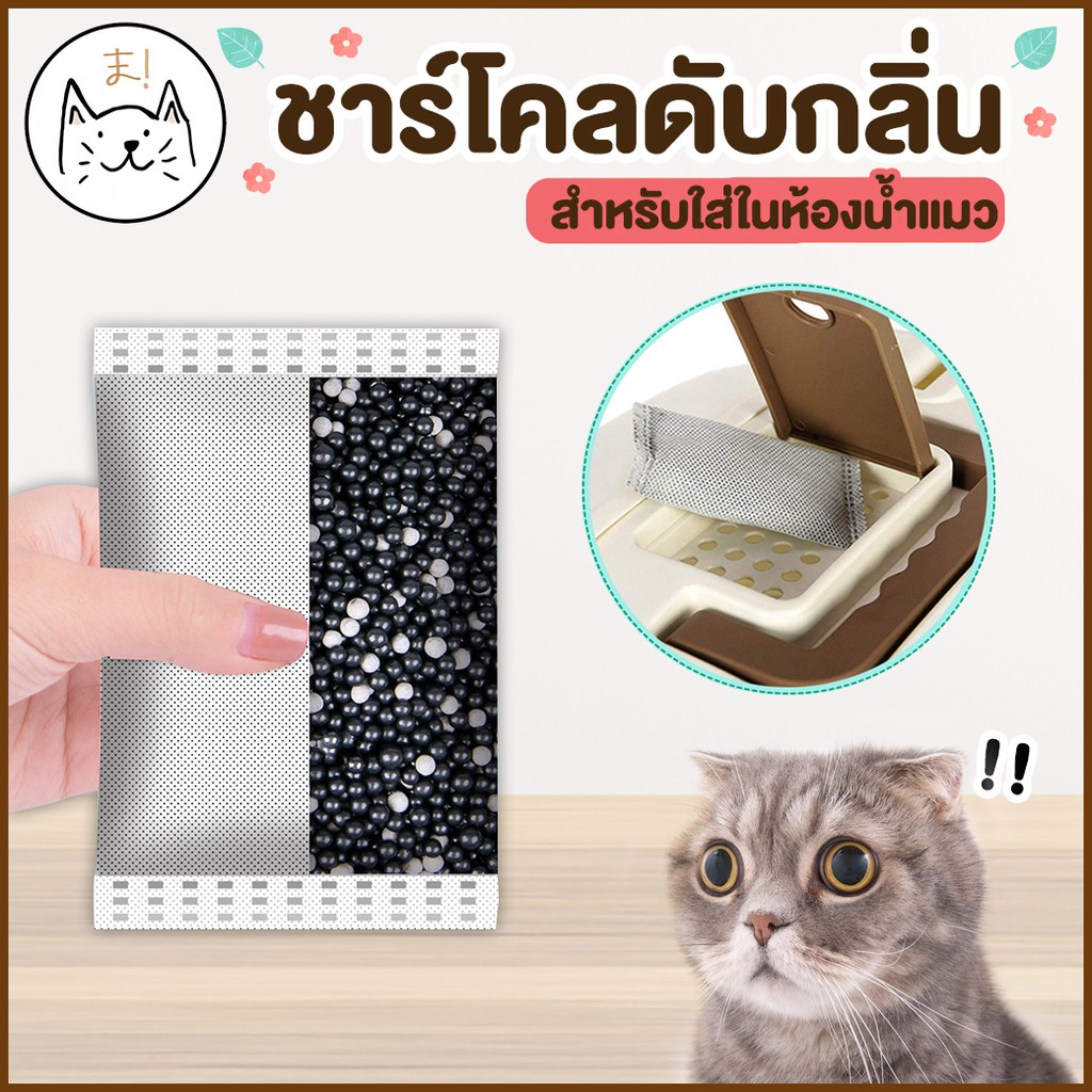 KUMAま ถุงชาร์โคลดับกลิ่น เม็ดดับกลิ่นทรายแมว ถุงคาร์บอนดับกลิ่น ถุงดับกลิ่นห้องน้ำแมว เม็ดดูดกลิ่น เม็ดชาร์โคล 55g