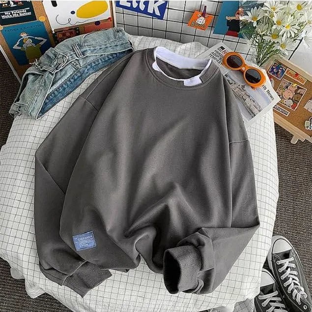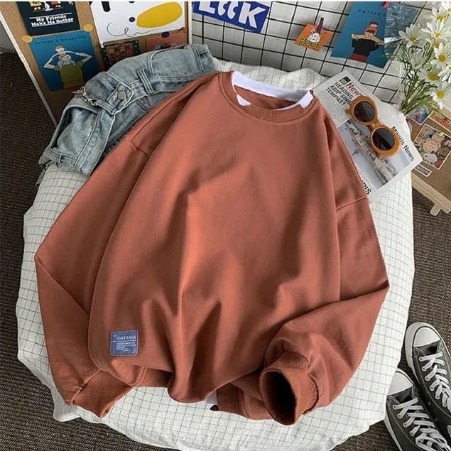 【จัดส่งทันที】sweater oversizeCotton T-shirt early autumn เสื้อสเวตเตอร์แขนยาวสกรีนลาย round salt thin sweater women