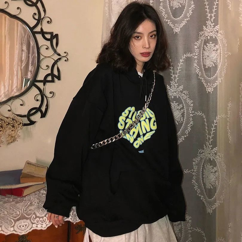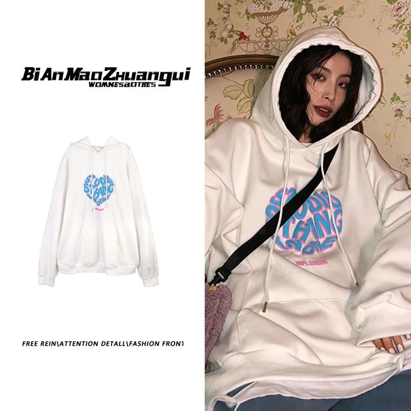 Hooded sweater women's spring and autumn thin style Korean design Love loose Hong Kong style jacket coat salt