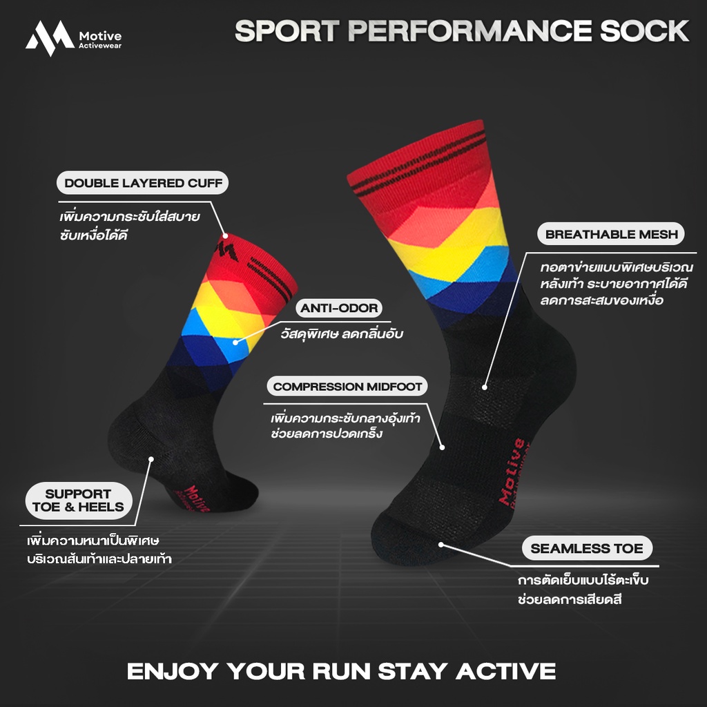 MOTIVE SOCK ถุงเท้า Sport Performance ระดับหน้าแข้ง ถุงเท้ากีฬา ถุงเท้าวิ่ง ออกกำลังกาย ขนาดฟรีไซส์