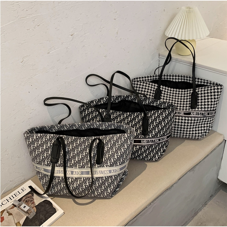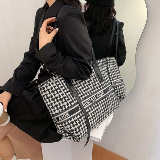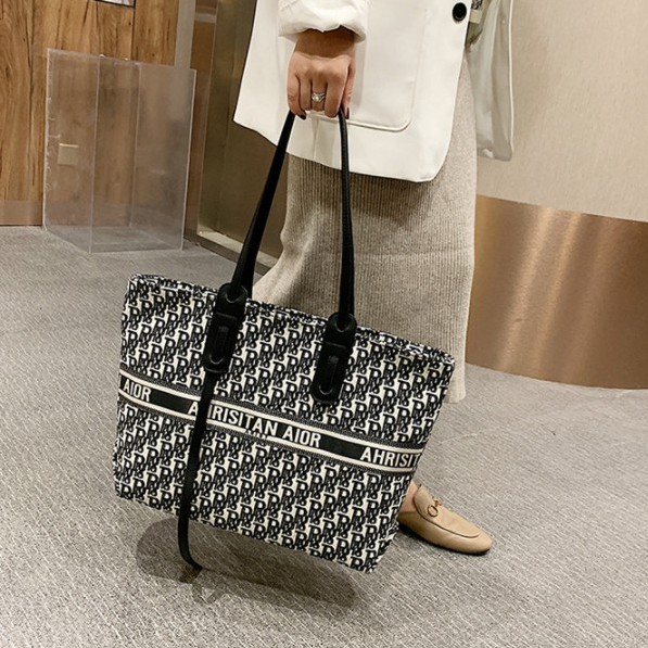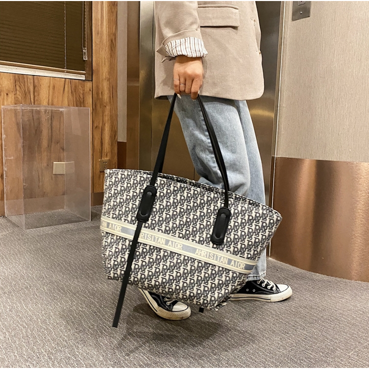 𝗣𝗥𝗢𝗦 กระเป๋าผ้าใบใหญ่ ทรงช้อปปิ้ง งานดี งานพรีเมี่ยม รุ่นขายดี ผ้าปักลาย สายหนัง มี3ลาย