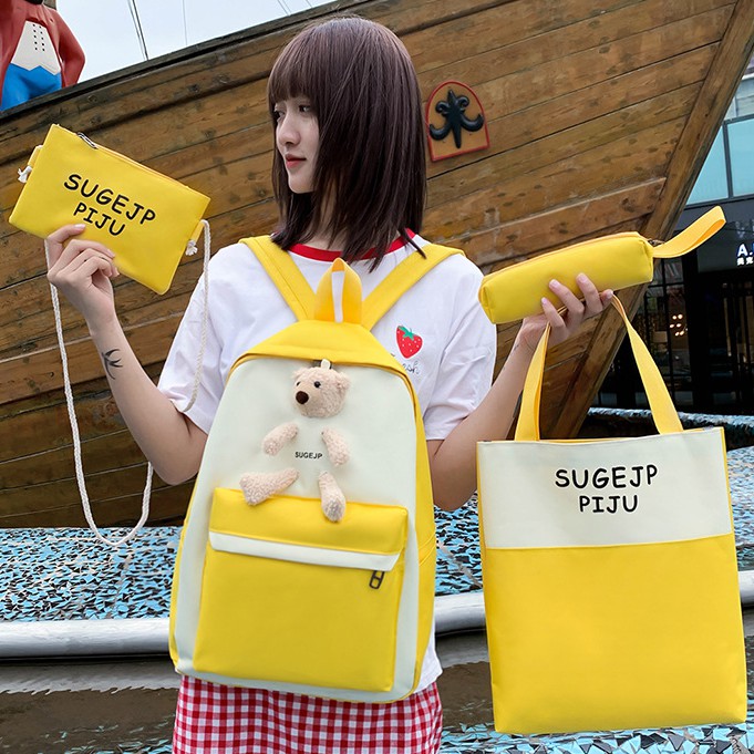 𝗣𝗥𝗢𝗦 กระเป๋าเป้เซต4ชิ้นหมีน้อยสีพื้นจุของได้เยอะสุดคุ้ม 2024 เทรนด์ ด่วน️️ถูกและดีที่นี้เท่านั้น ️️