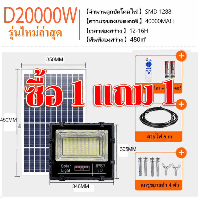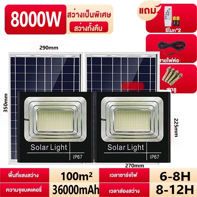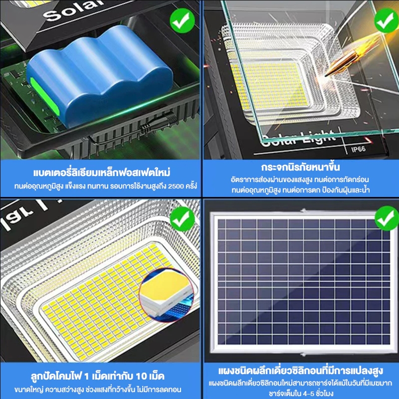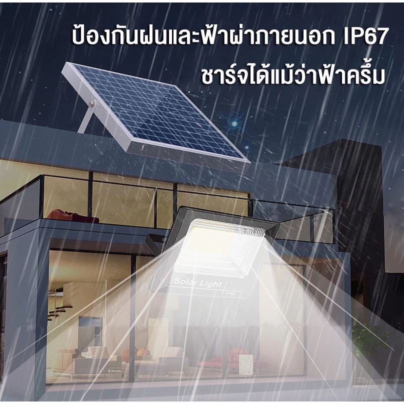ไฟโซล่าเซลล์ สว่างอัตโนมัติเมื่อฟ้ามืด กันน้ำ ป้องกันฟ้าผ่า Led solar light รีโมทคอนโทรล ไฟกลางแจ้ง