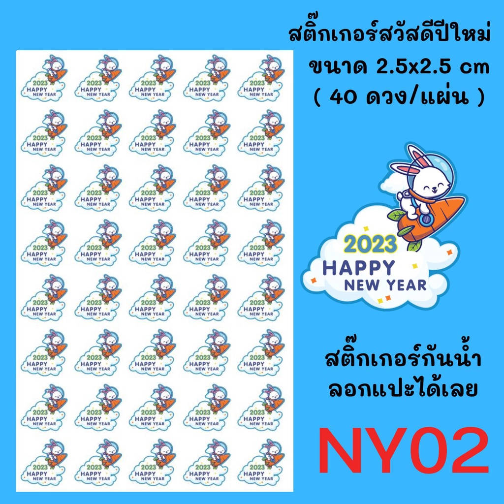 สติ๊กเกอร์สวัสดีปีใหม่ 2023 สติกเกอร์ขอบคุณ สติกเกอร์กันน้ำ ขนาด 2.5x2.5cm (35ดวง/แผ่น)