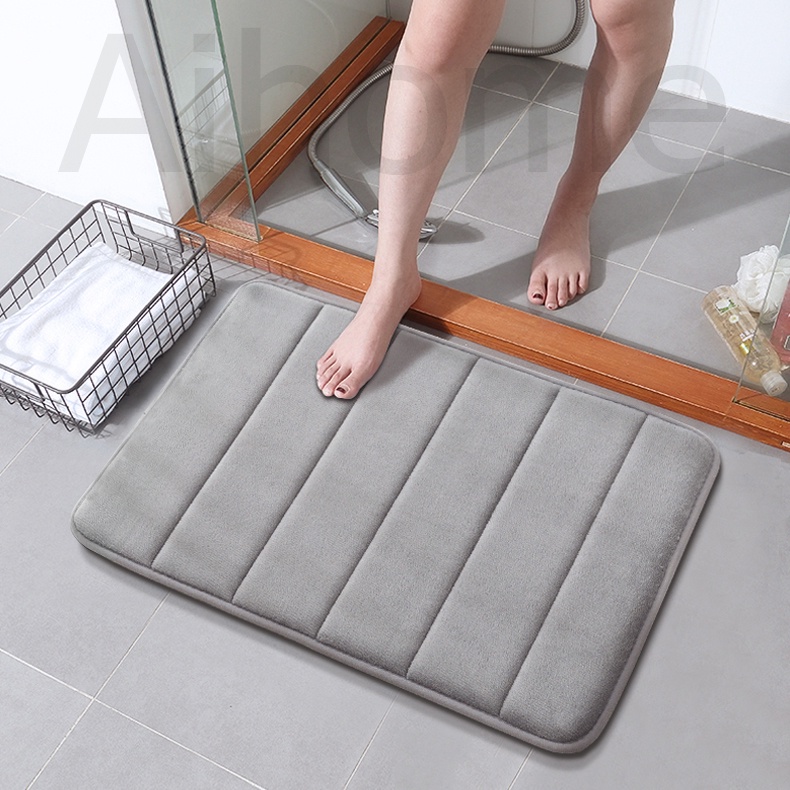 AiHome พรมเช็ดเท้า พรมเช็ดเท้า โฟม ล้างทําความสะอาดได้ ห้องครัว พื้น ปะการัง ขนแกะ ประตู พรมลายทาง ดูดซับน้ํา กันลื่น