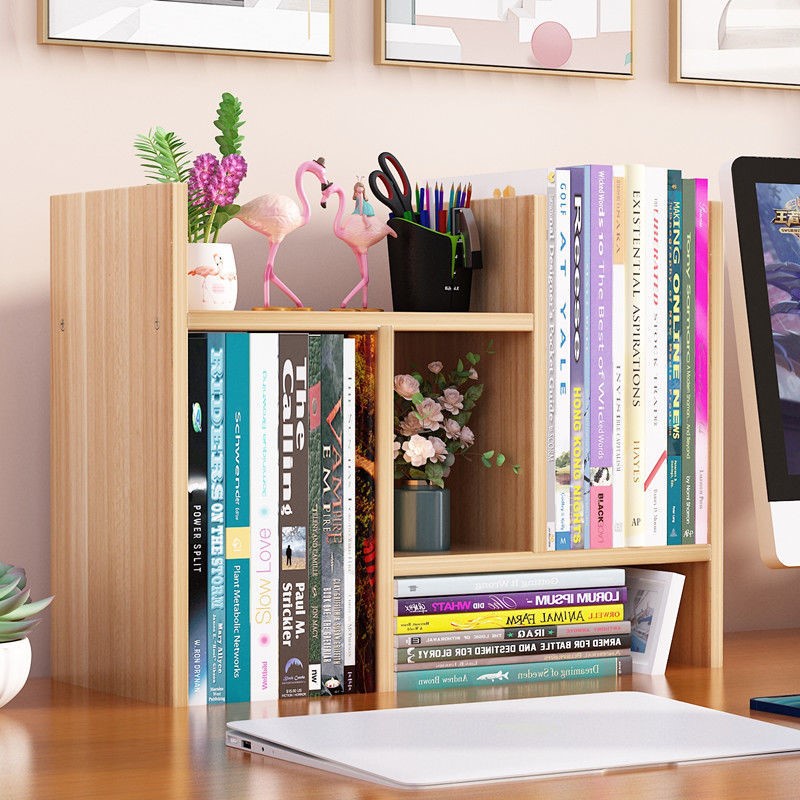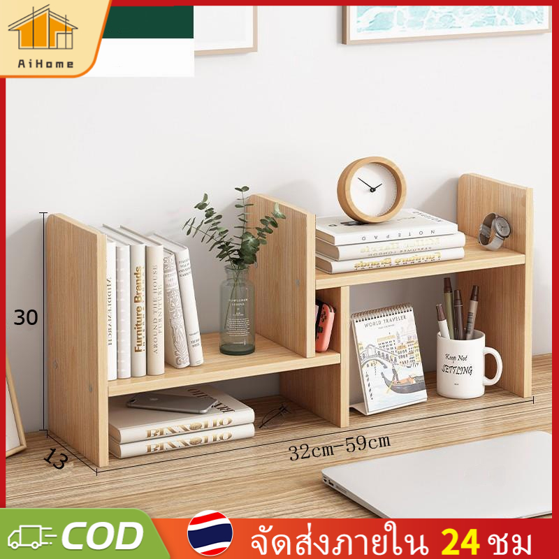 AiHome ชั้นวางของบนโต๊ะ ชั้นวางหนังสือไม้ ปรับเปลี่ยนรูปทรงได้