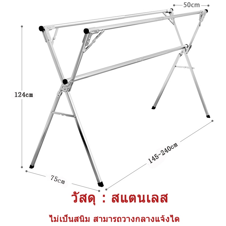 AiHome ราวตากผ้าสแตนเลสรุ่น พับเก็บง่าย ยืดหดได้ 1.2-2 เมตร ราวตากผ้า ราวตากผ้าพับได้ ราวตากผ้าตัวX