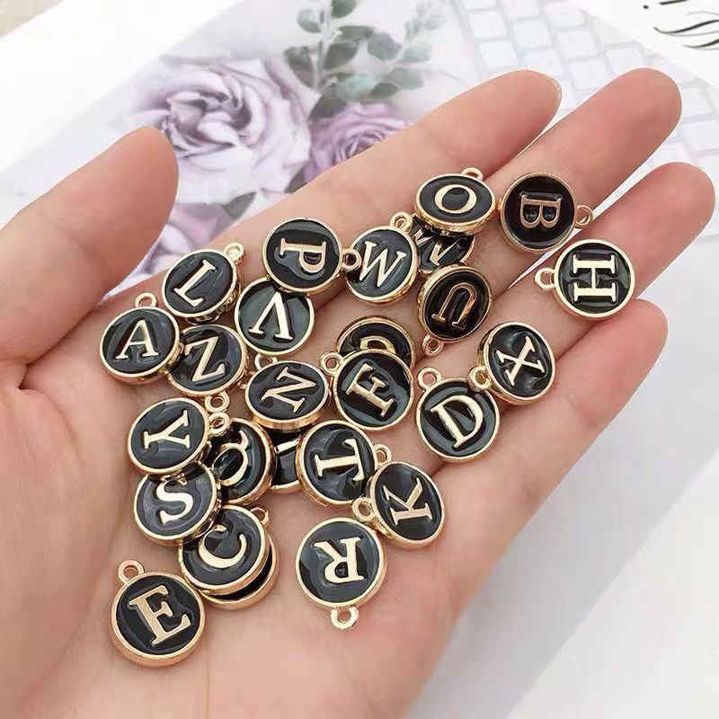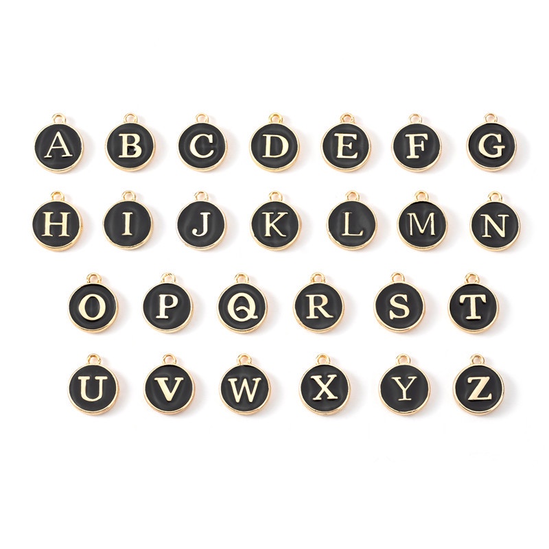 ขายส่ง 26 แบบ จี้ตัวอักษรภาษาอังกฤษA-Z ดำ ชุดแรก จี้ตัวอักษรภาษาอังกฤษ 1.2 ซม. สําหรับทําเครื่องประดับ Diy