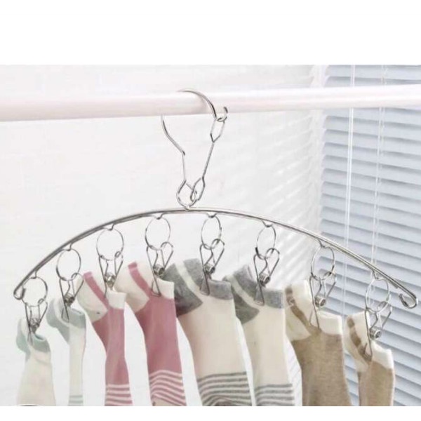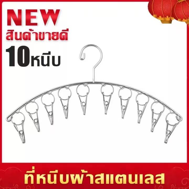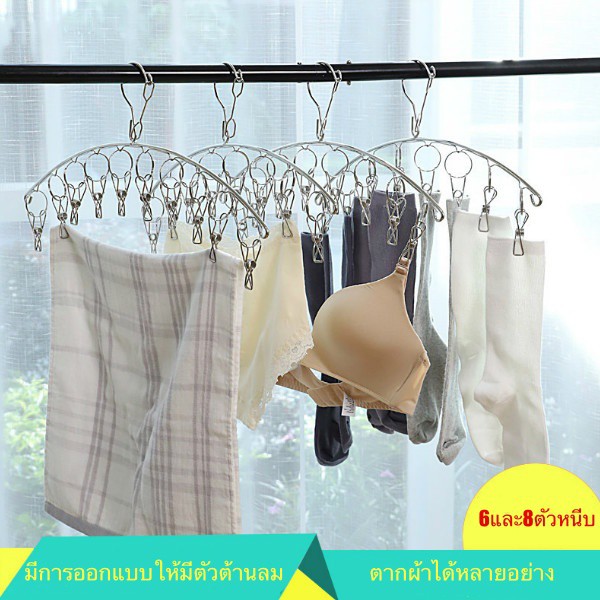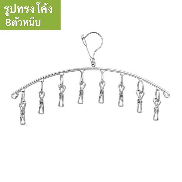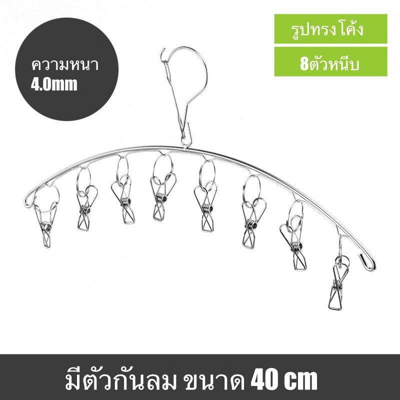 ไม้แขวนทรงโค้งครึ่งวงกลม ความหนา4.0mm ที่หนีบผ้าสแตนเลส พวง8และ10 ตัวหนีบ (มี 2 แบบให้เลือก)
