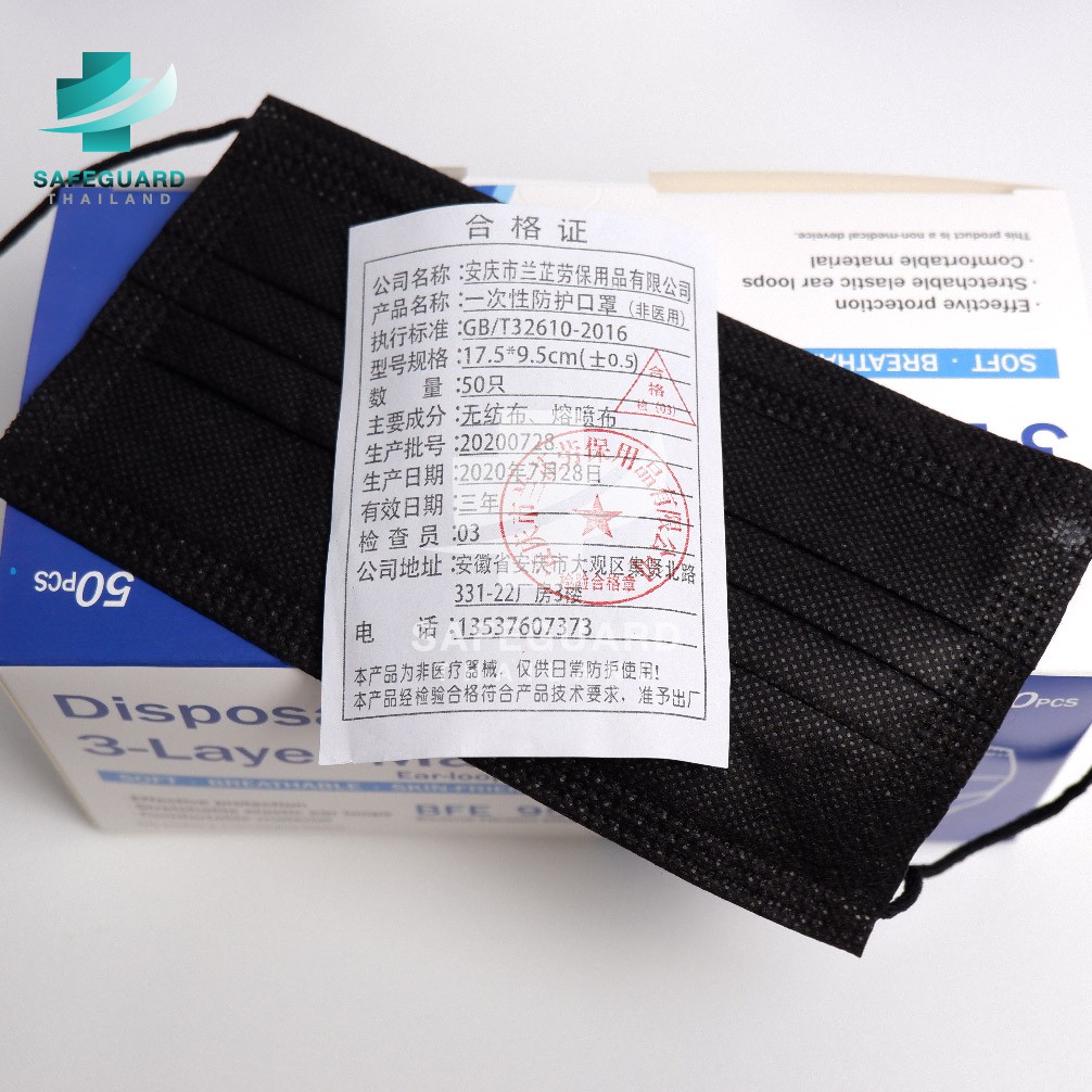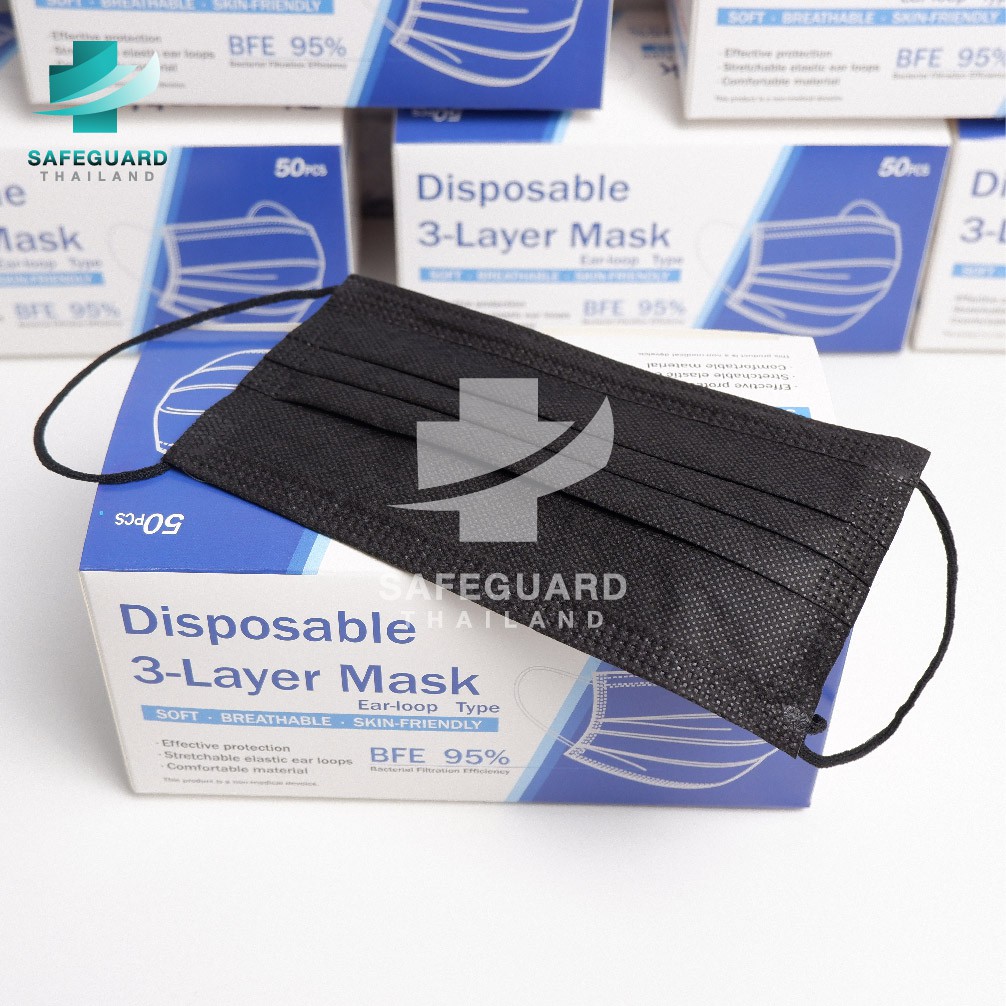 ส่งด่วน1 วัน สีดำ2ด้าน หน้ากากอนามัย หน้ากากอนามัย 50 ชิ้นพร้อมส่งหนา 3ชั้น หน้ากากอนามัยสีดำ