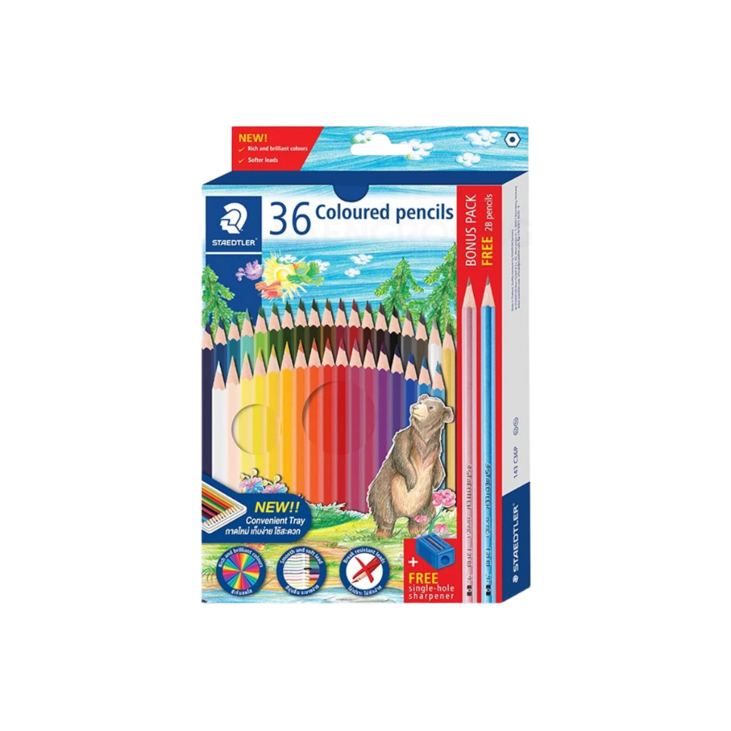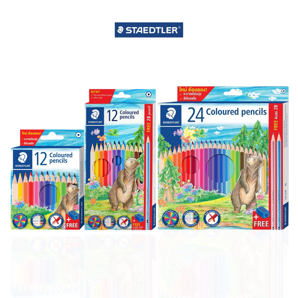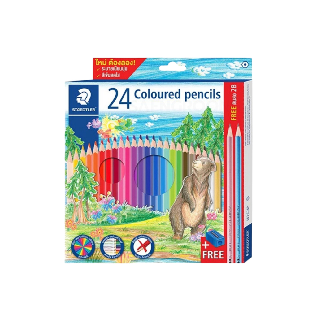 สีไม้ลายหมี รุ่น 143 12สี, 24สี, 36สี, 50สี ยี่ห้อ Steadler 1กล่อง