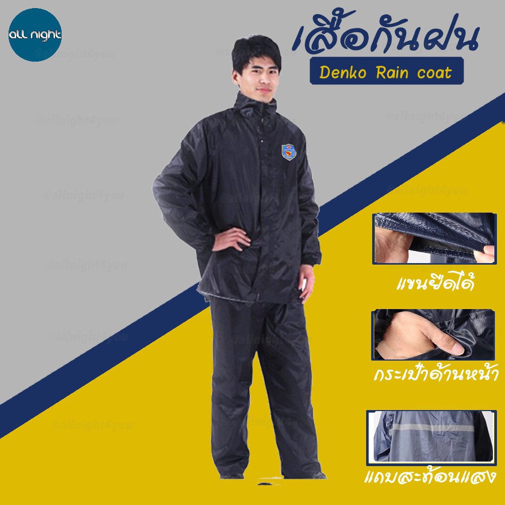 Denko เสื้อกันฝน ชุดกันฝน เกรดผ้าหนา ขนาดฟรีไซส์ใส่ได้ทั้งหญิงและชาย (พร้อมส่ง)