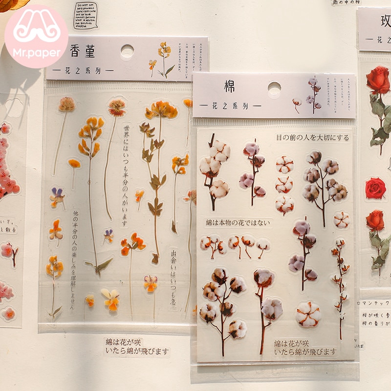 Mr.Paper สติกเกอร์ ลายดอกไม้ สําหรับตกแต่งสมุดภาพ