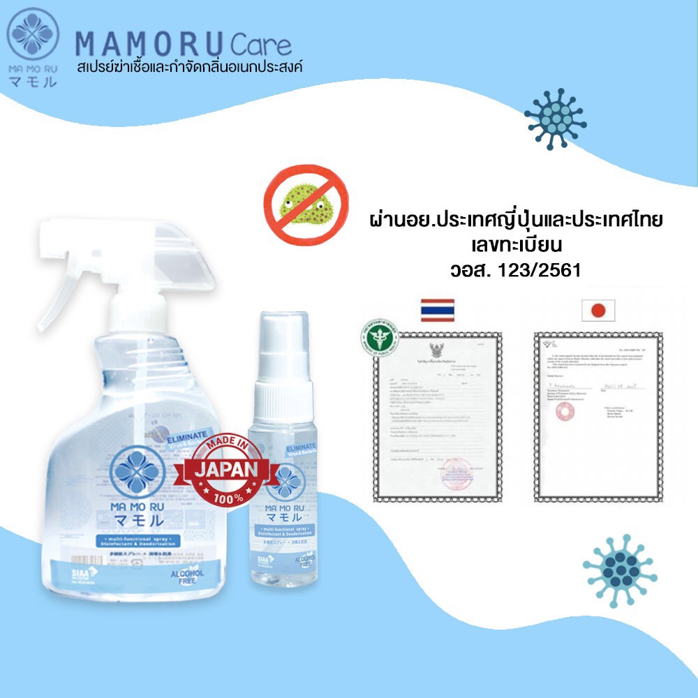 [แพ็คคู่ สุดคุ้ม] Mamoru Care มาโมรุ แคร์ สเปย์ฆ่าเชื้อโรคและกำจัดกลิ่นอเนกประสงค์