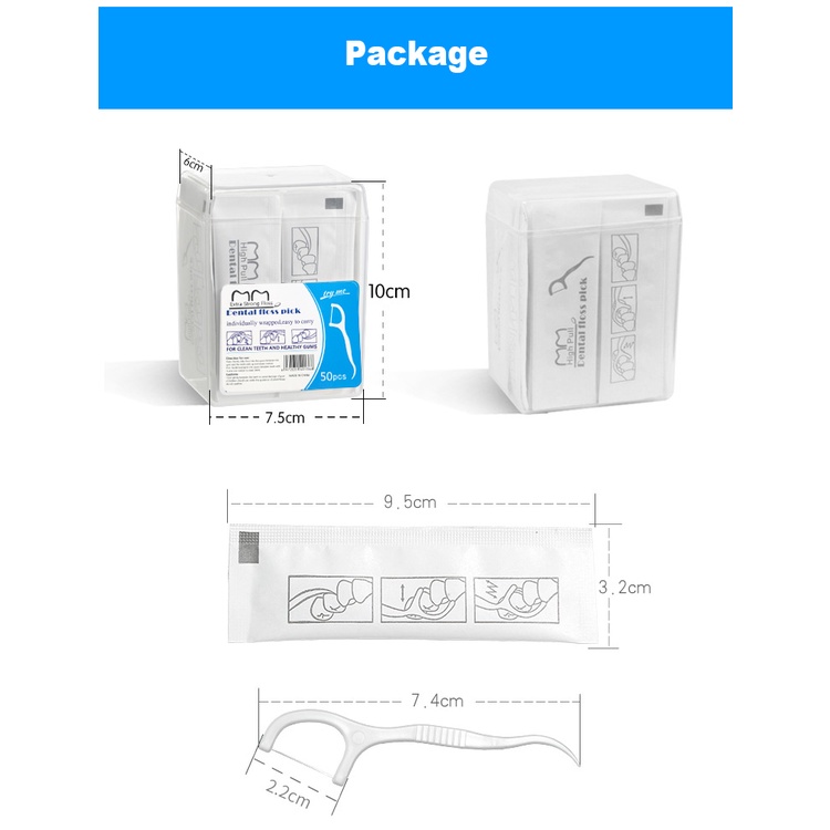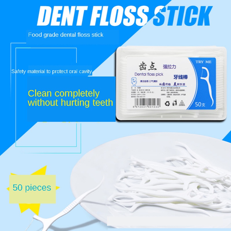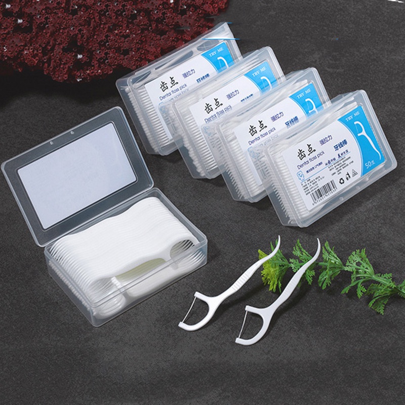 ไหมขัดฟันชนิดด้าม/ไม้จิ้มฟันพลาสติก ไหมขัดฟันชนิดด้าม ไหมขัดฟันแบบแท่ง/กล่อง 50 ชิ้น