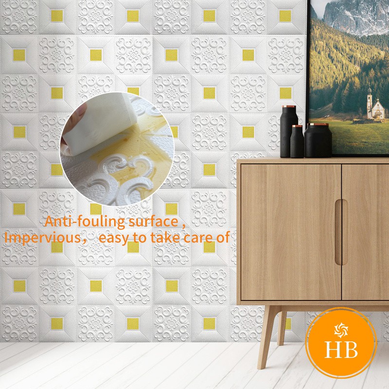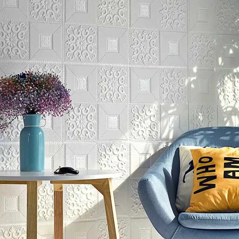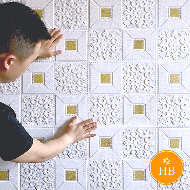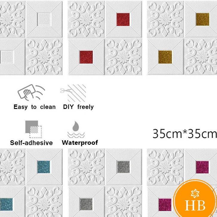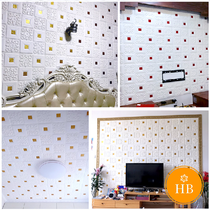 วอลล์เปเปอร์ติดผนัง 3 มิติ ลายกระเบื้อง 3D สำหรับติดผนัง เพดาน ขนาด 35x35 ซม กันกระแทก มีกาวในตัว 1 แผ่น
