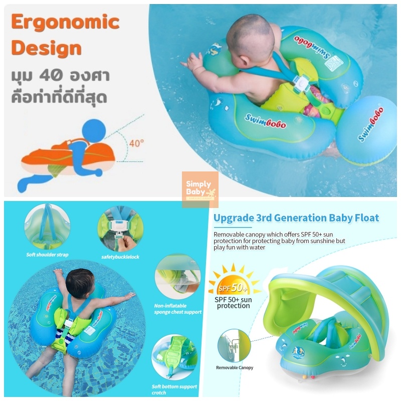 Simply Baby ห่วงยางว่ายน้ำเด็ก ห่วงยางเด็ก ห่วงยางพยุงตัว swimbobo สำหรับเด็กอายุ 0-72 เดือน [B33]