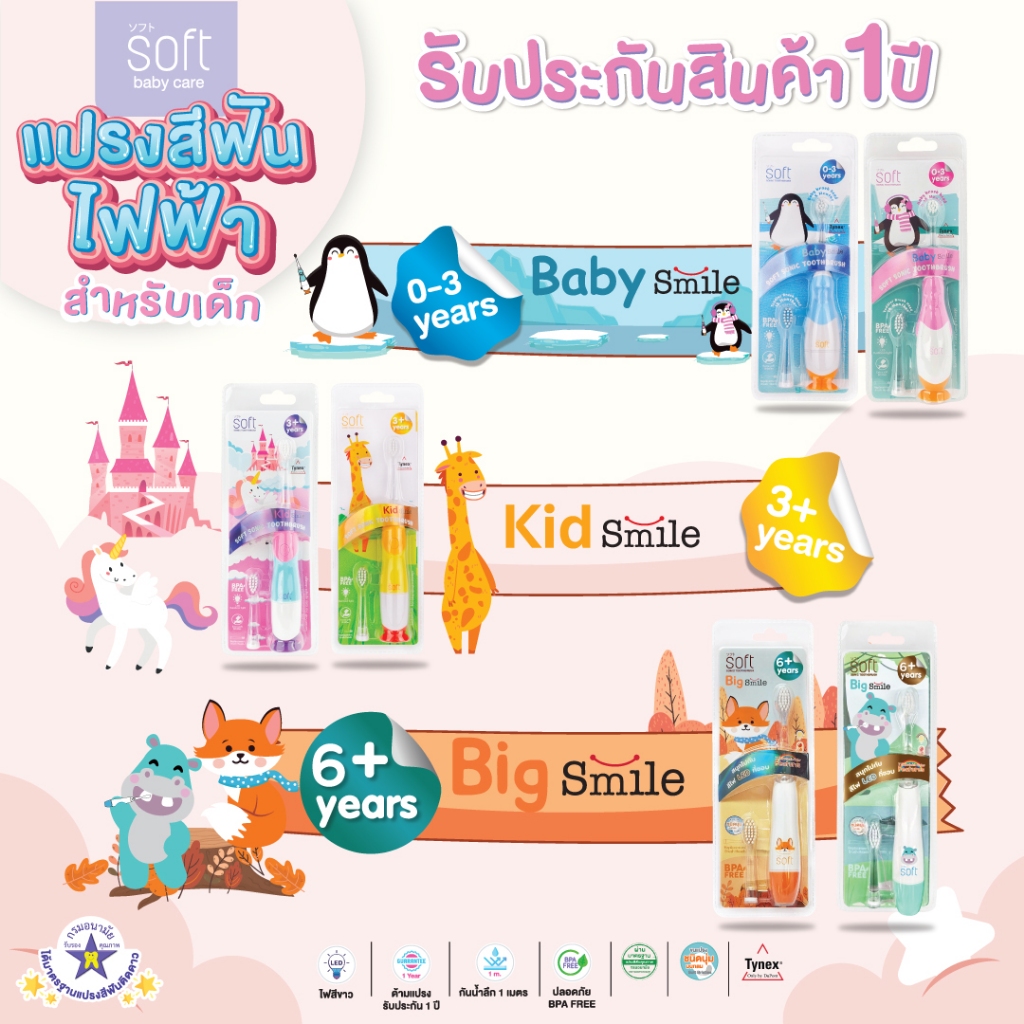 แปรงสีฟันเด็ก แปรงสีฟันไฟฟ้าระบบโซนิค SOFT สำหรับเด็ก 0-3 ขวบ, 3 ขวบขึ้นไป และ 6ขวบขึ้นไป
