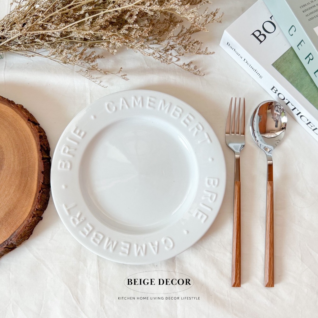 จานขาวลายนูน มีความมินิมอล มีลายนูนรอบใบ ใส่อาหารน่ารักมั้กๆ