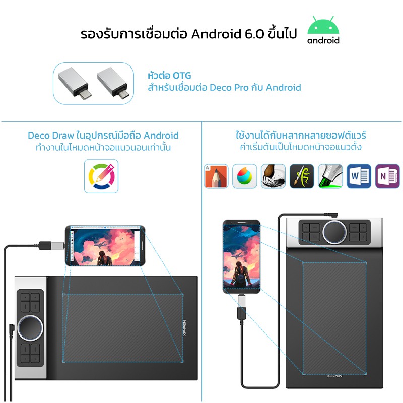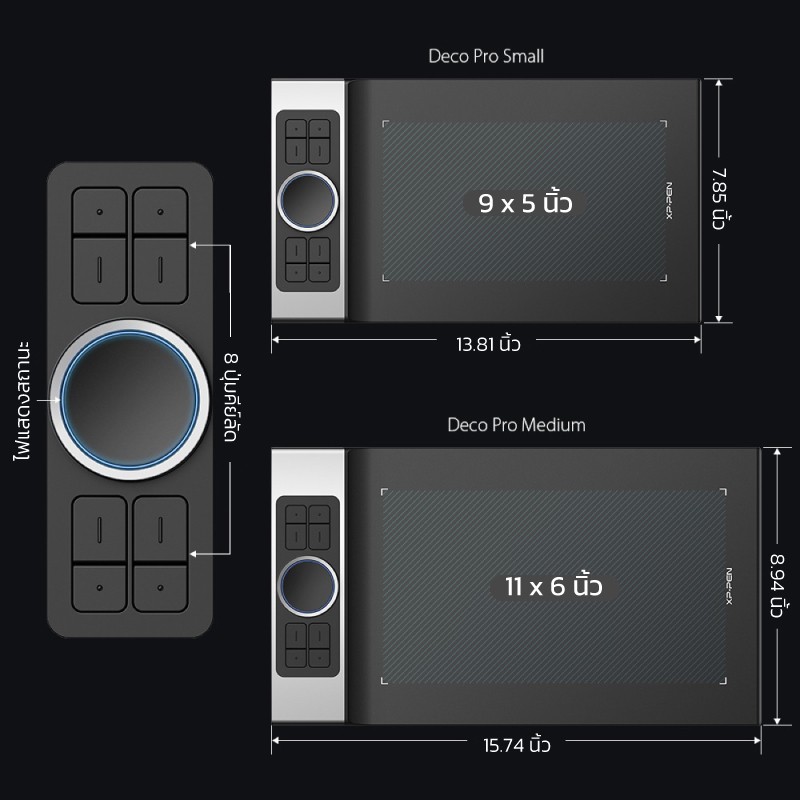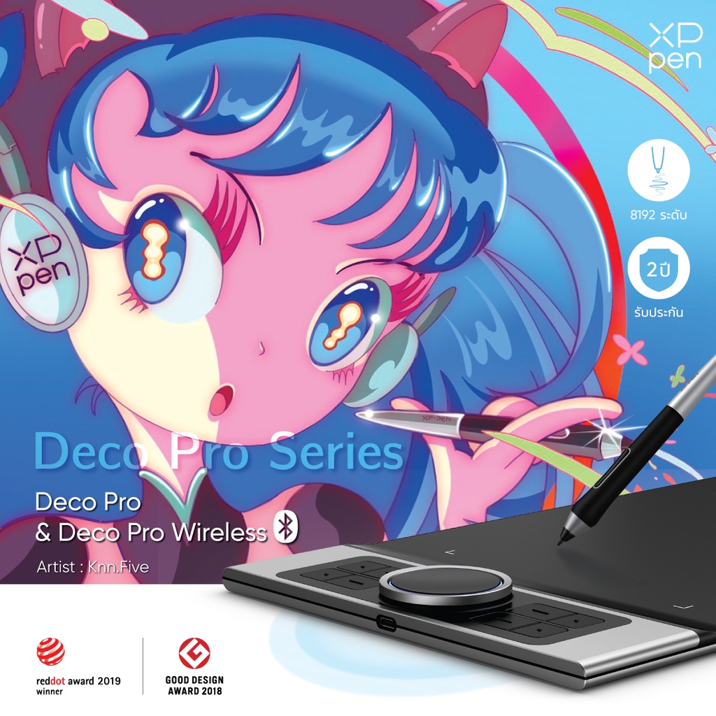 XPPen Deco Pro เมาส์ปากกา นักวาดกราฟิกมือโปร แรงกดปากกา 8192 วงล้อแบบสัมผัส รับประกันศูนย์ไทย 2 ปี