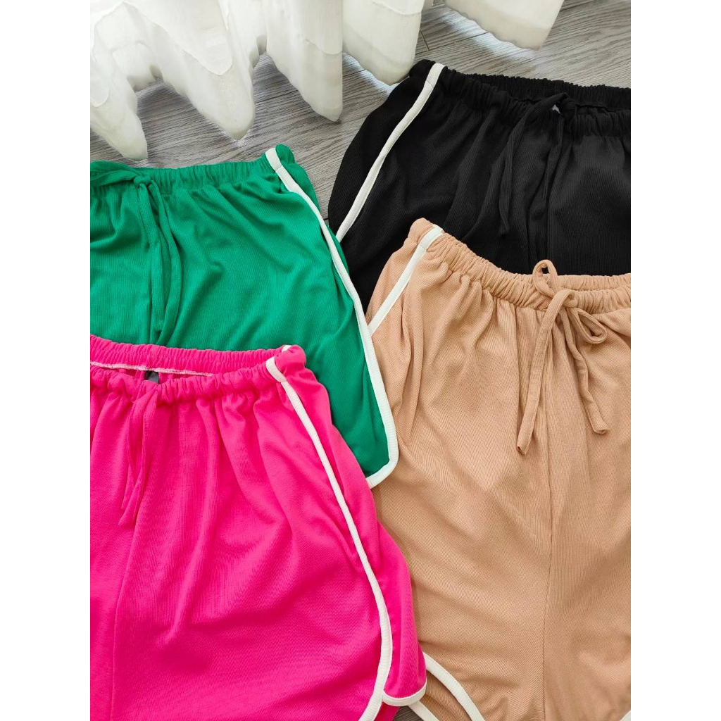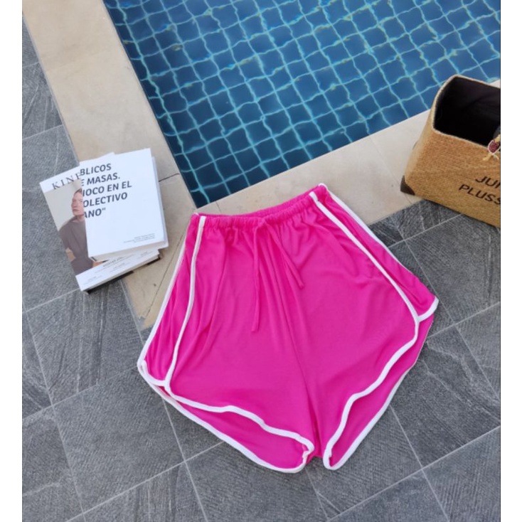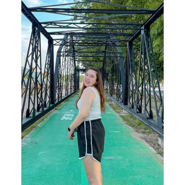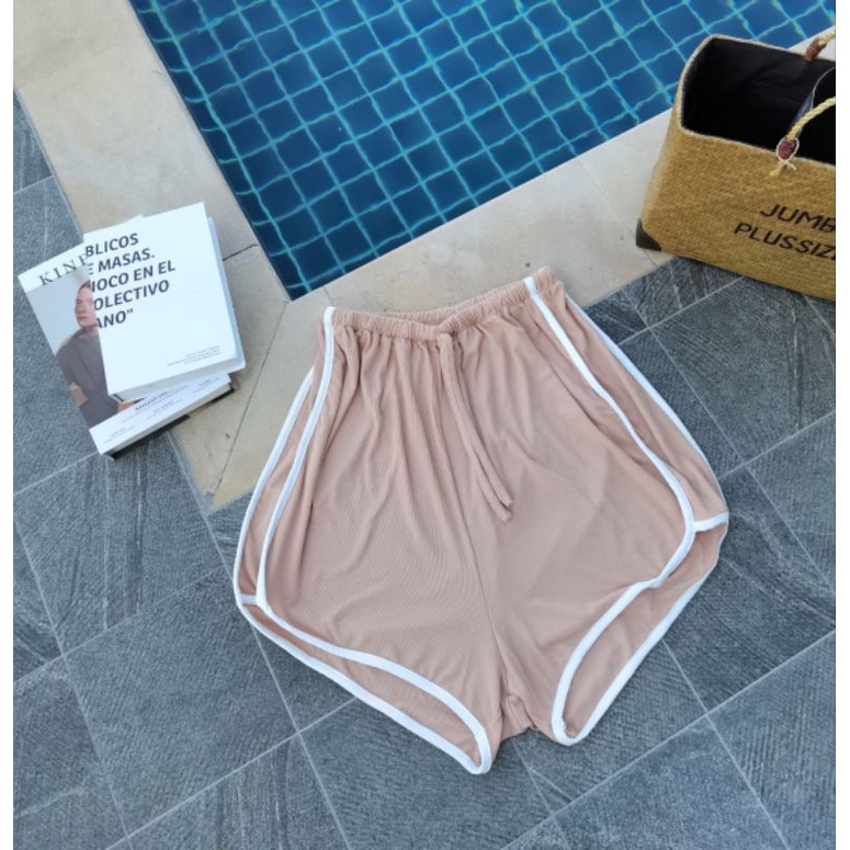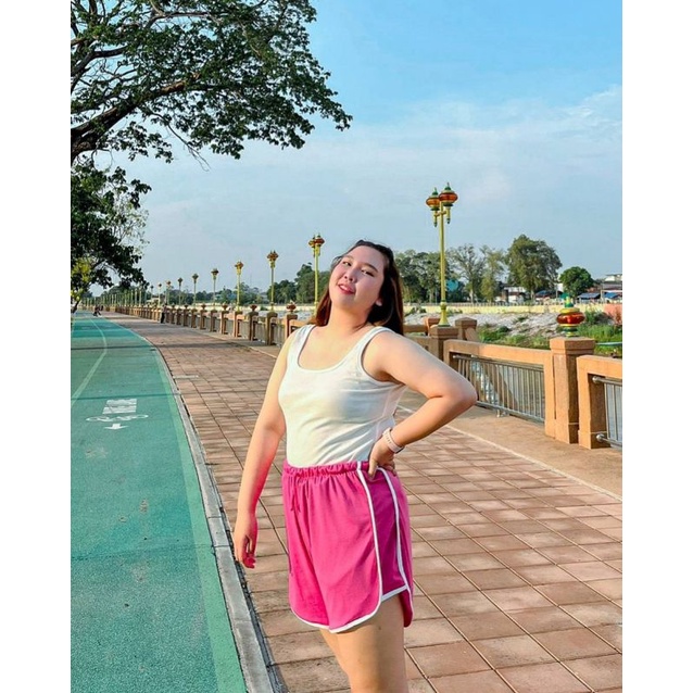 𝗦𝗔𝗦𝗦𝗬 𝗦𝗛𝗢𝗥𝗧𝗦 | กางเกงขาสั้นสาวอวบทรงเก๋ เนื้อผ้าไหมพรมร่อง เว้าด้านข้างเก๋ๆ เอวสม็อครอบ