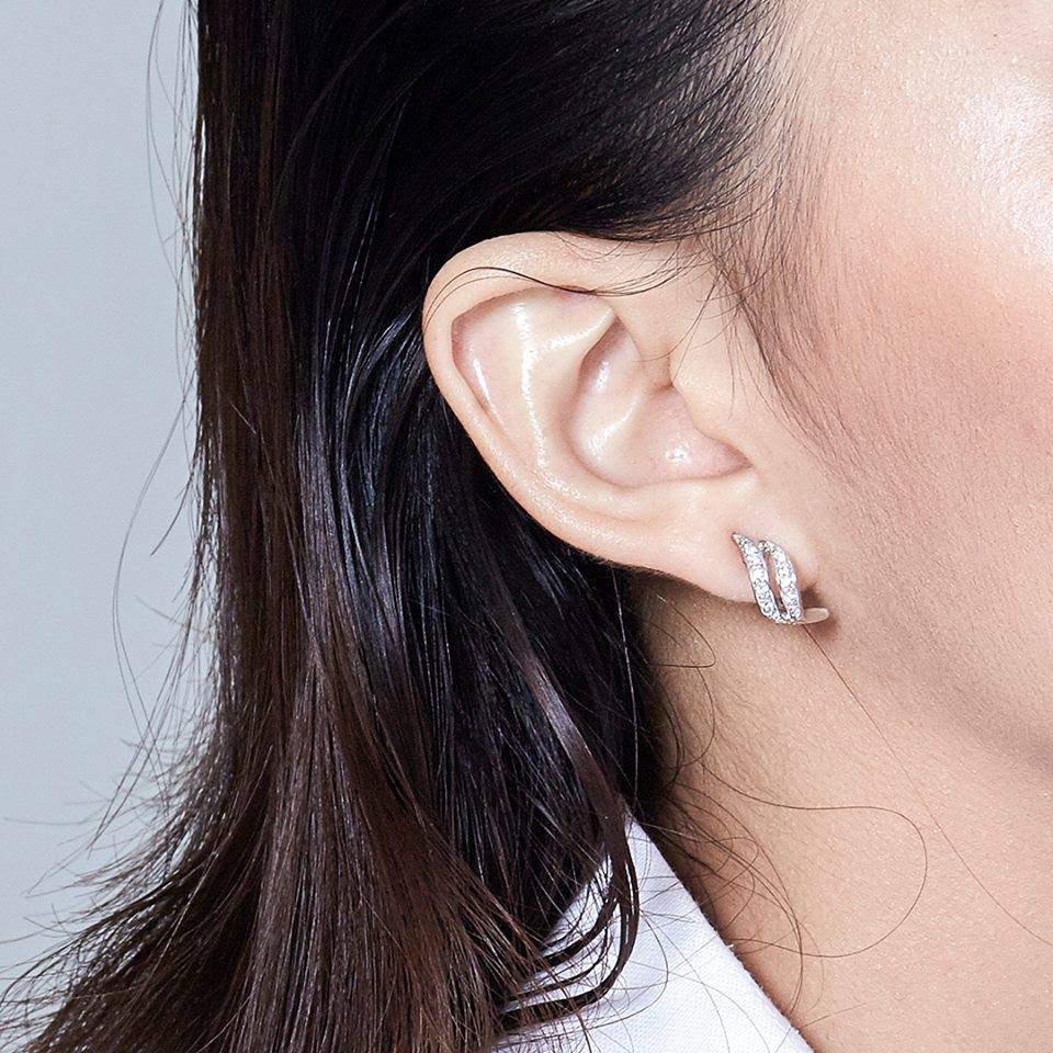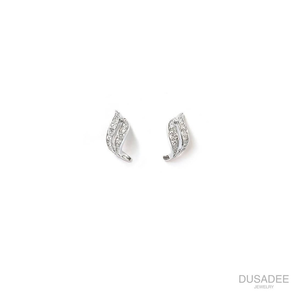 Glam earrings ต่างหูเงินแท้ ชุบทองคำขาว ประดับเพชรสวิตน้ำ100 แบรนด์ Dusadee Jewelry
