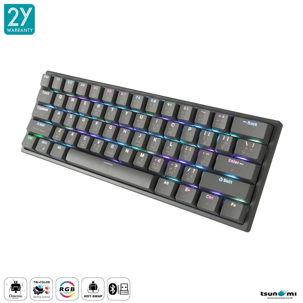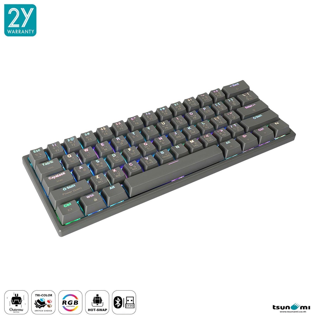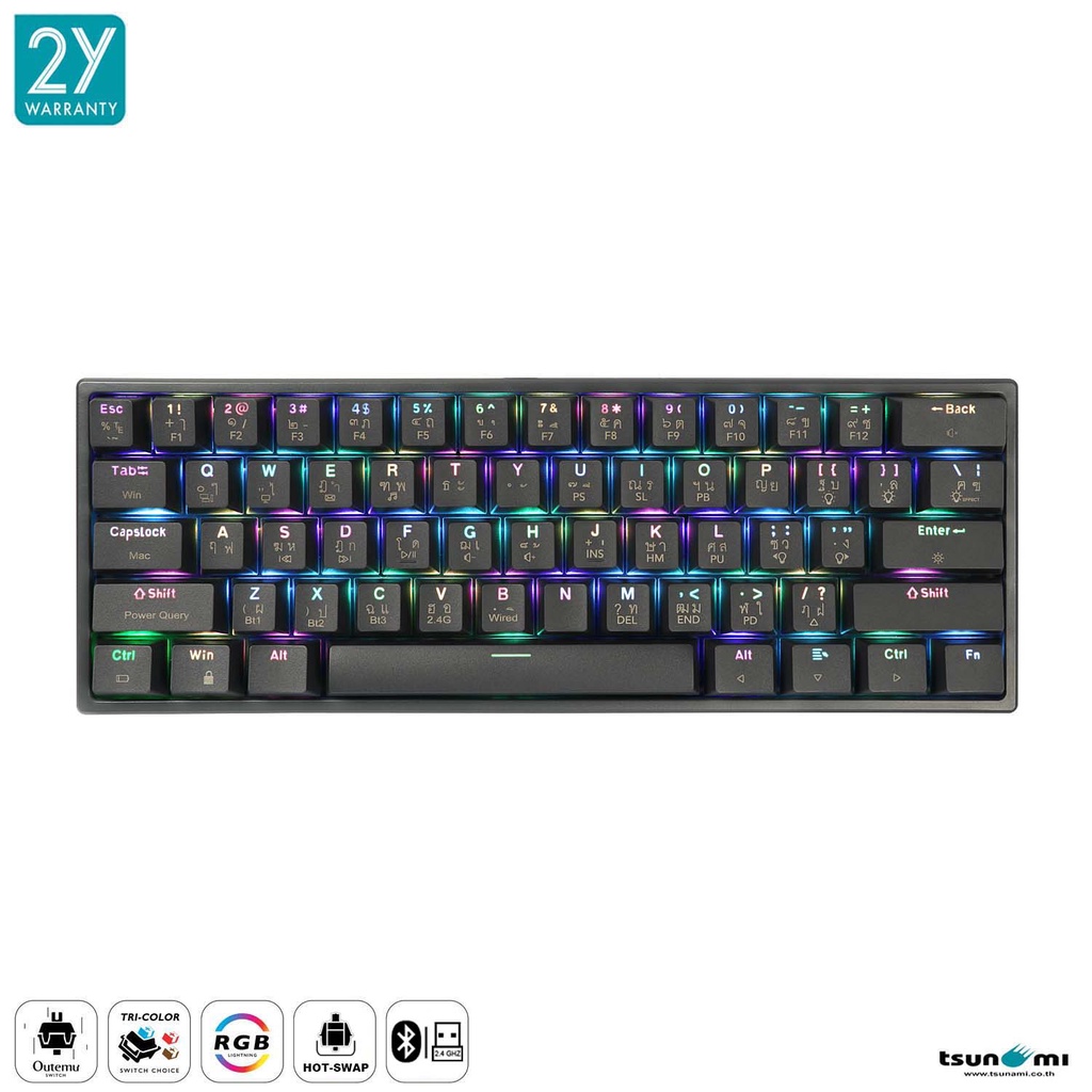คีย์บอร์ดเกมมิ่ง Tsunami Outemu MK-61 Max 60% Hotswappable Macro-Software RGB Compact Mechanical Keyboard รับประกัน 2 ปี